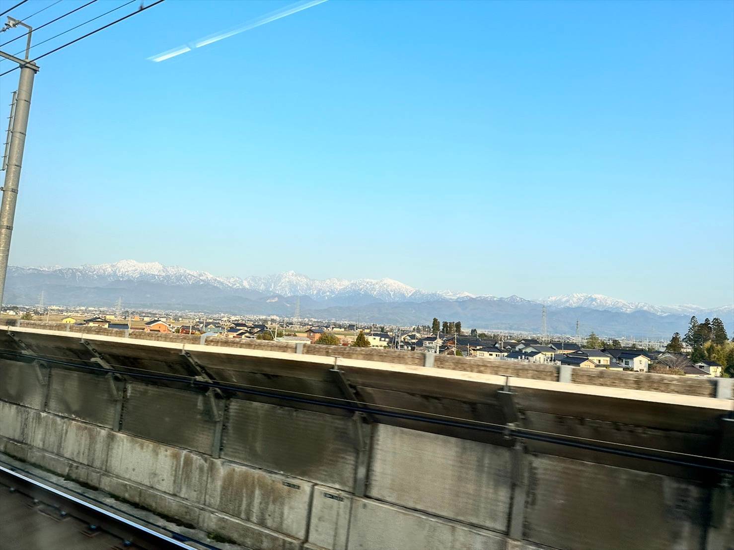 ▲帰りの新幹線からも立山連峰が綺麗に見えていました。