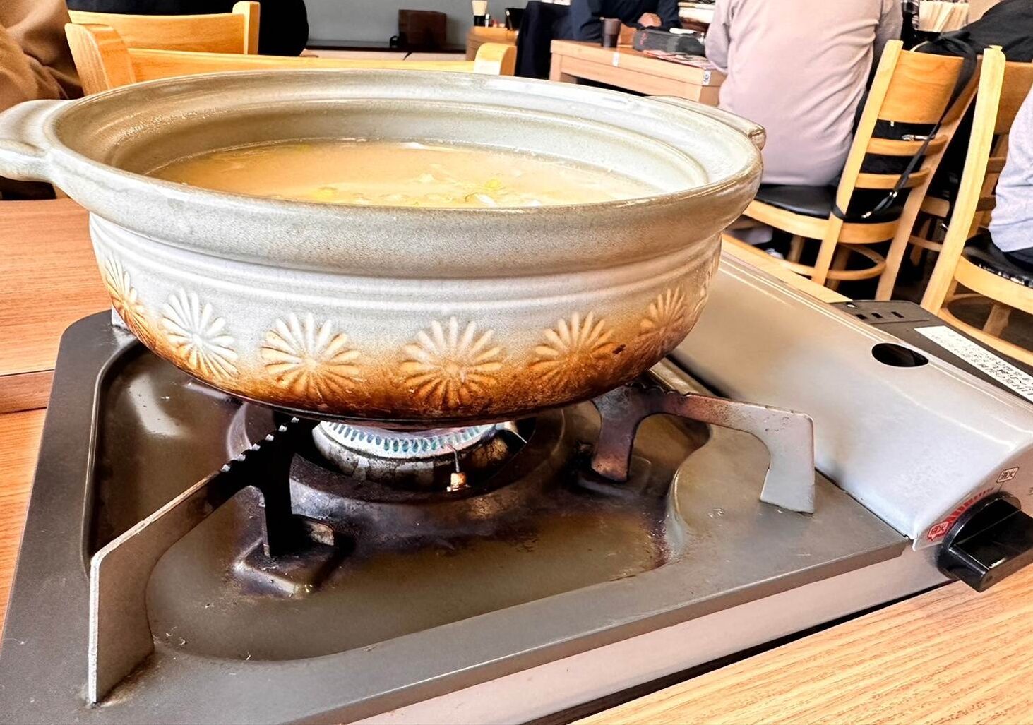 ▲丼を頼むとつみれ汁が土鍋で提供されます。