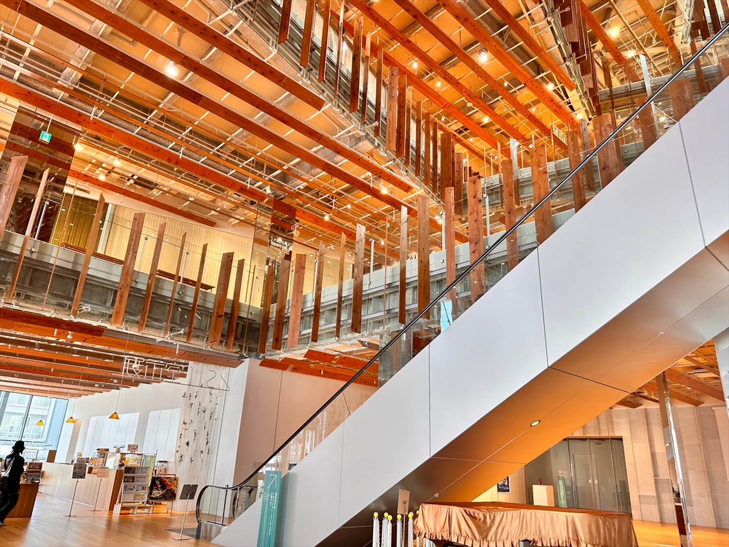 近未来的な外装と打って変わって、内装は木のぬくもりが温かい素敵な雰囲気でした!