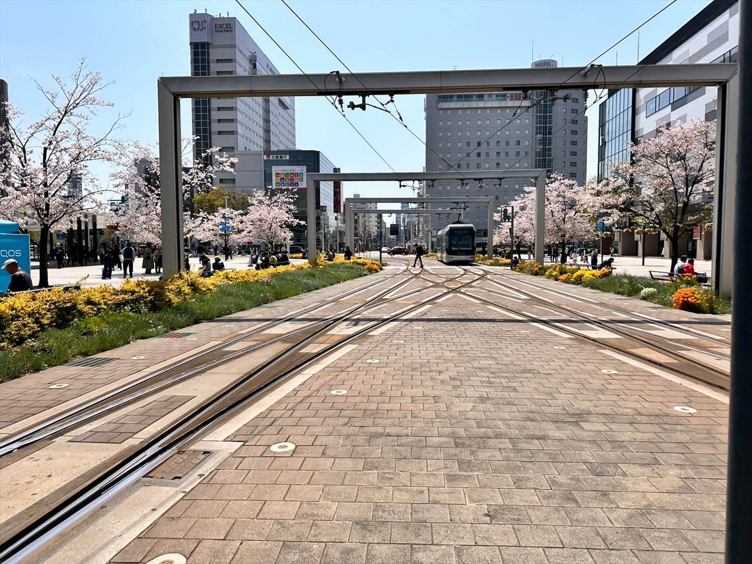 富山駅前にもぽんぽんと桜の木があって、こちらもこれまた美しかったですね…!