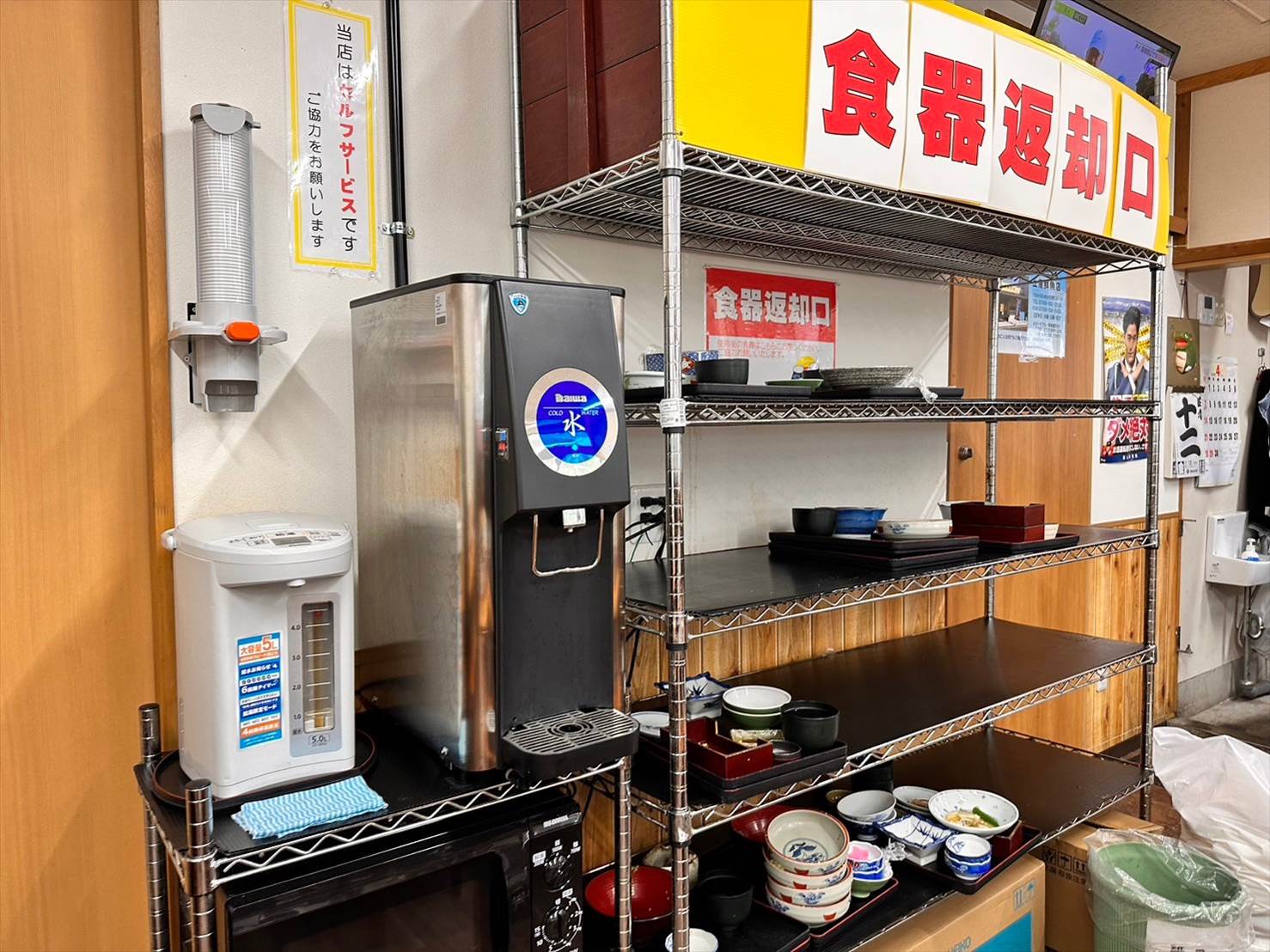 ▲セルフサービスでお水と温かいお茶が用意されていました。ありがたい…!