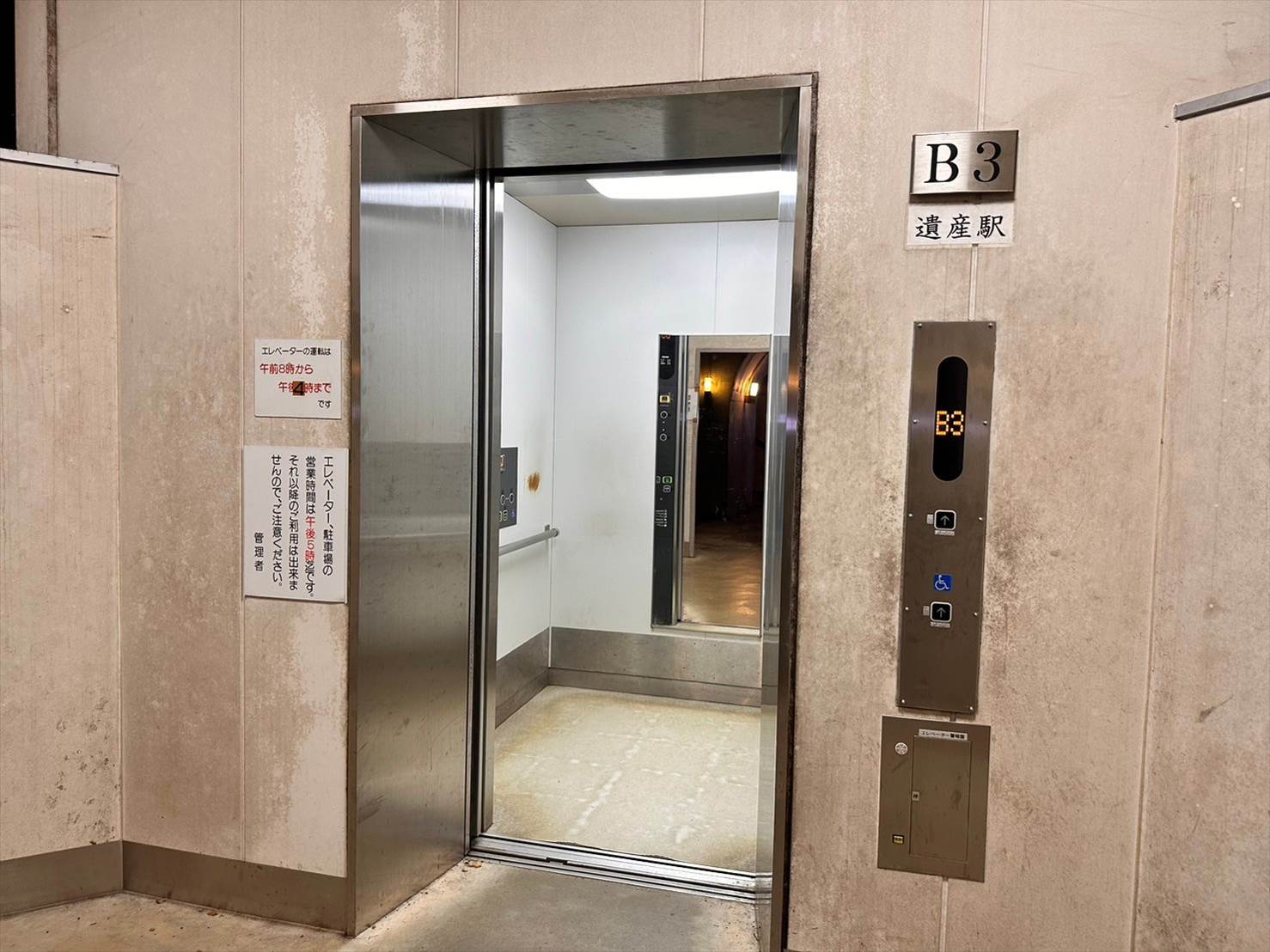 ▲B3階の遺産駅に到着しました!