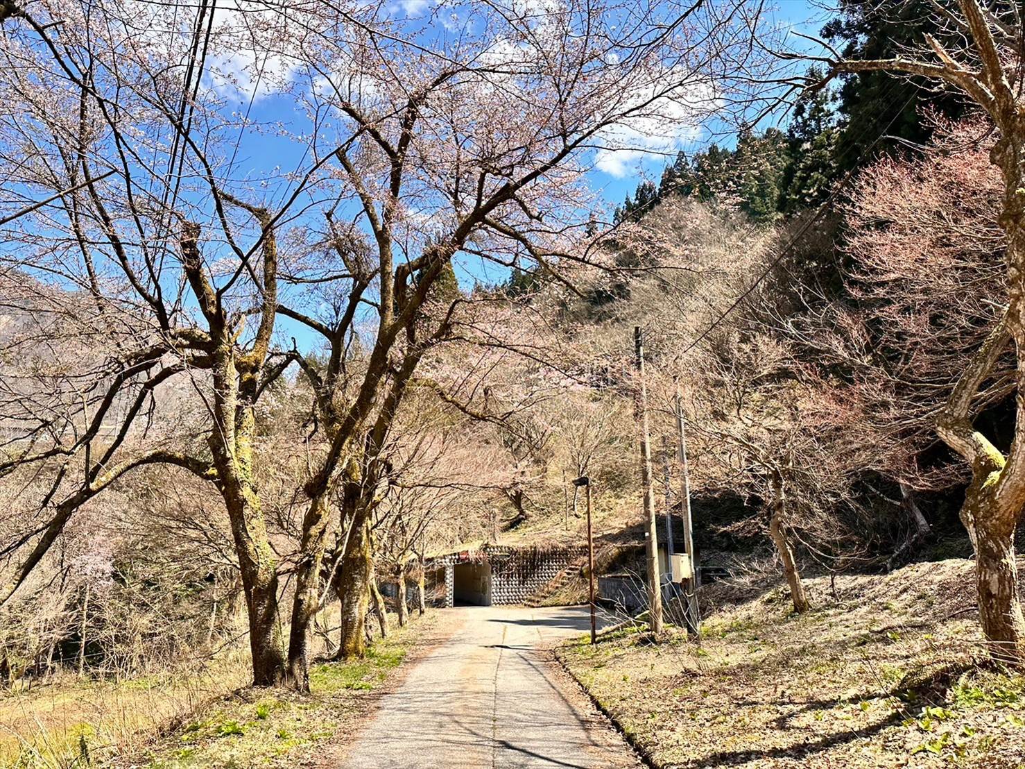 ▲道の脇に桜が満開になっている場所も!