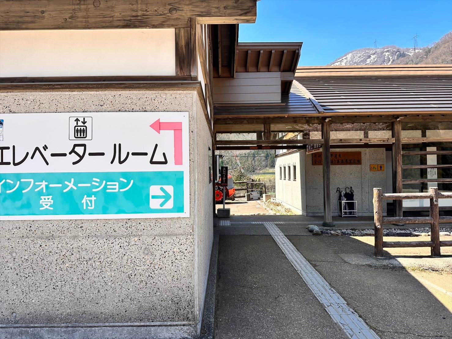 駐車場のある場所から集落へはエレベーターで下の階に降りる形でした。