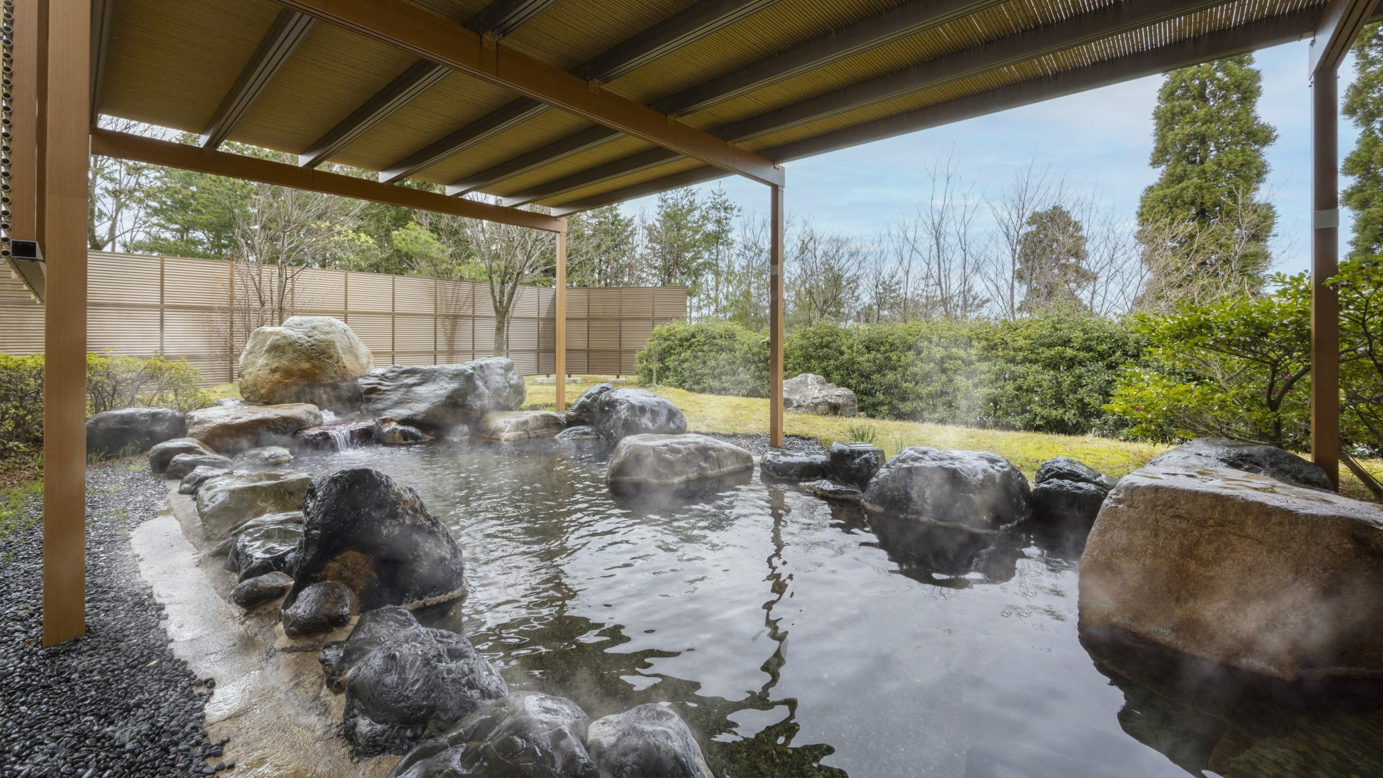 露天風呂付きのリニューアルされた大浴場で癒やされる