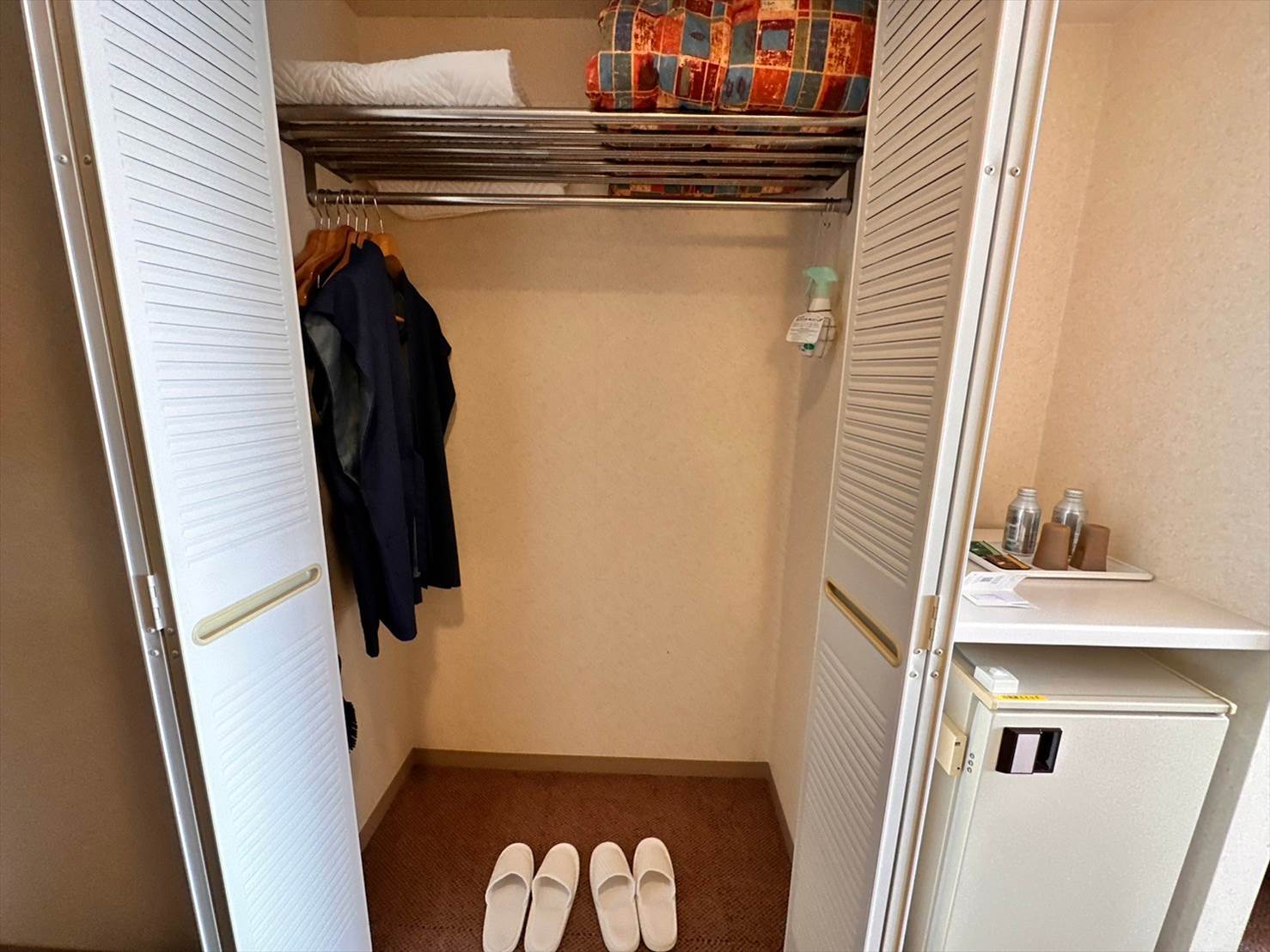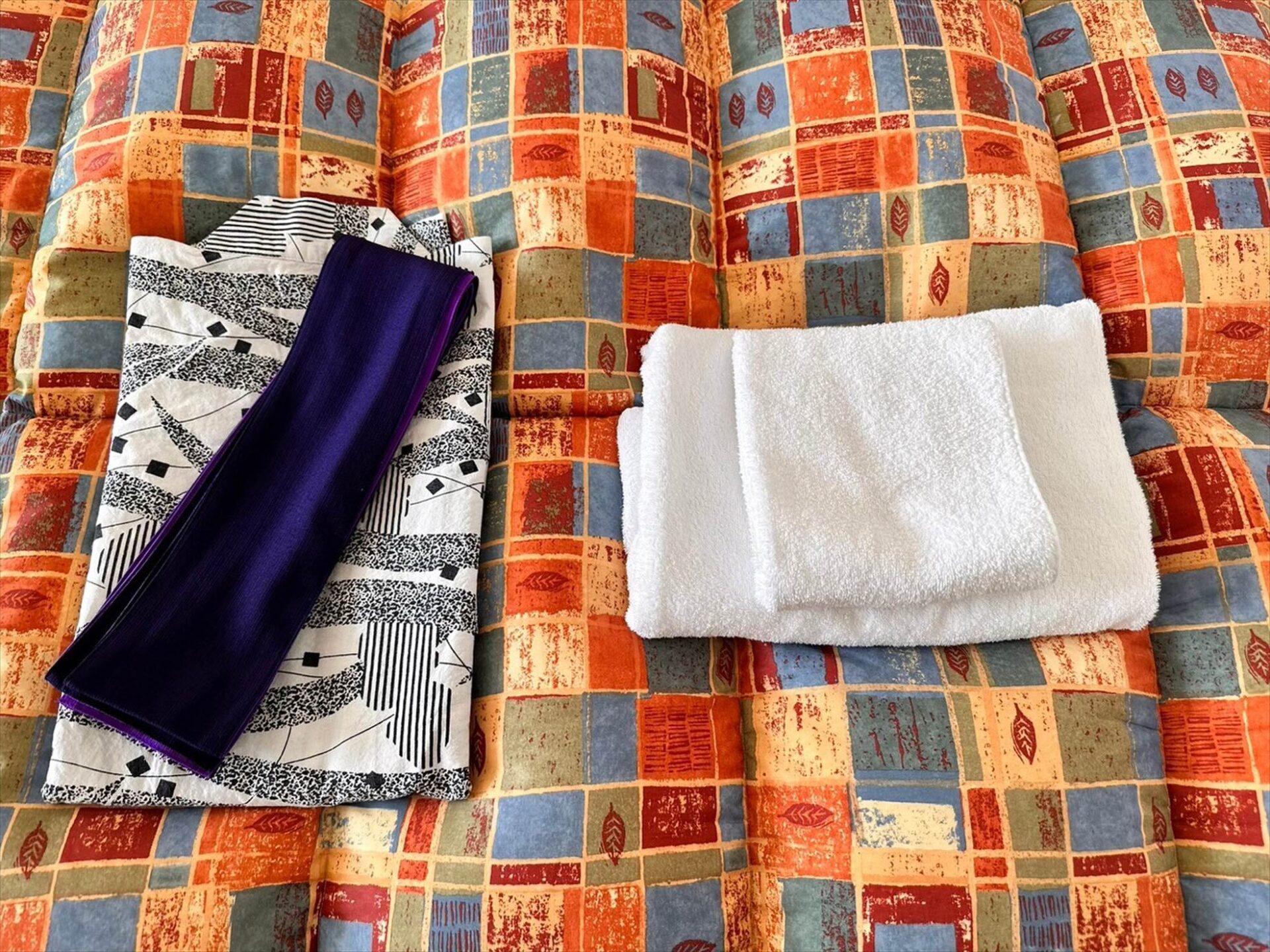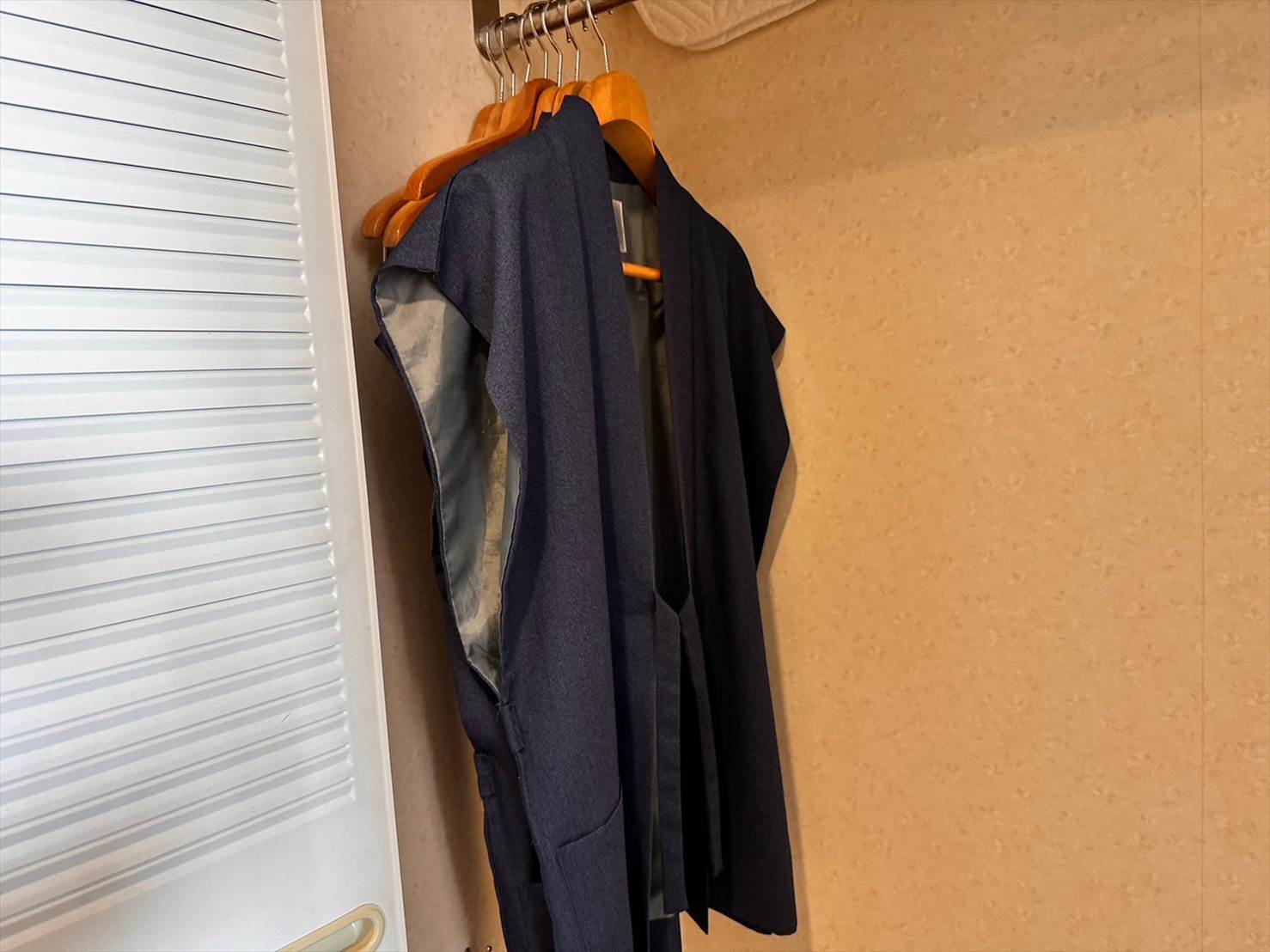 ▲ハンガーと浴衣の上に羽織ることができる衣類が用意されていました。