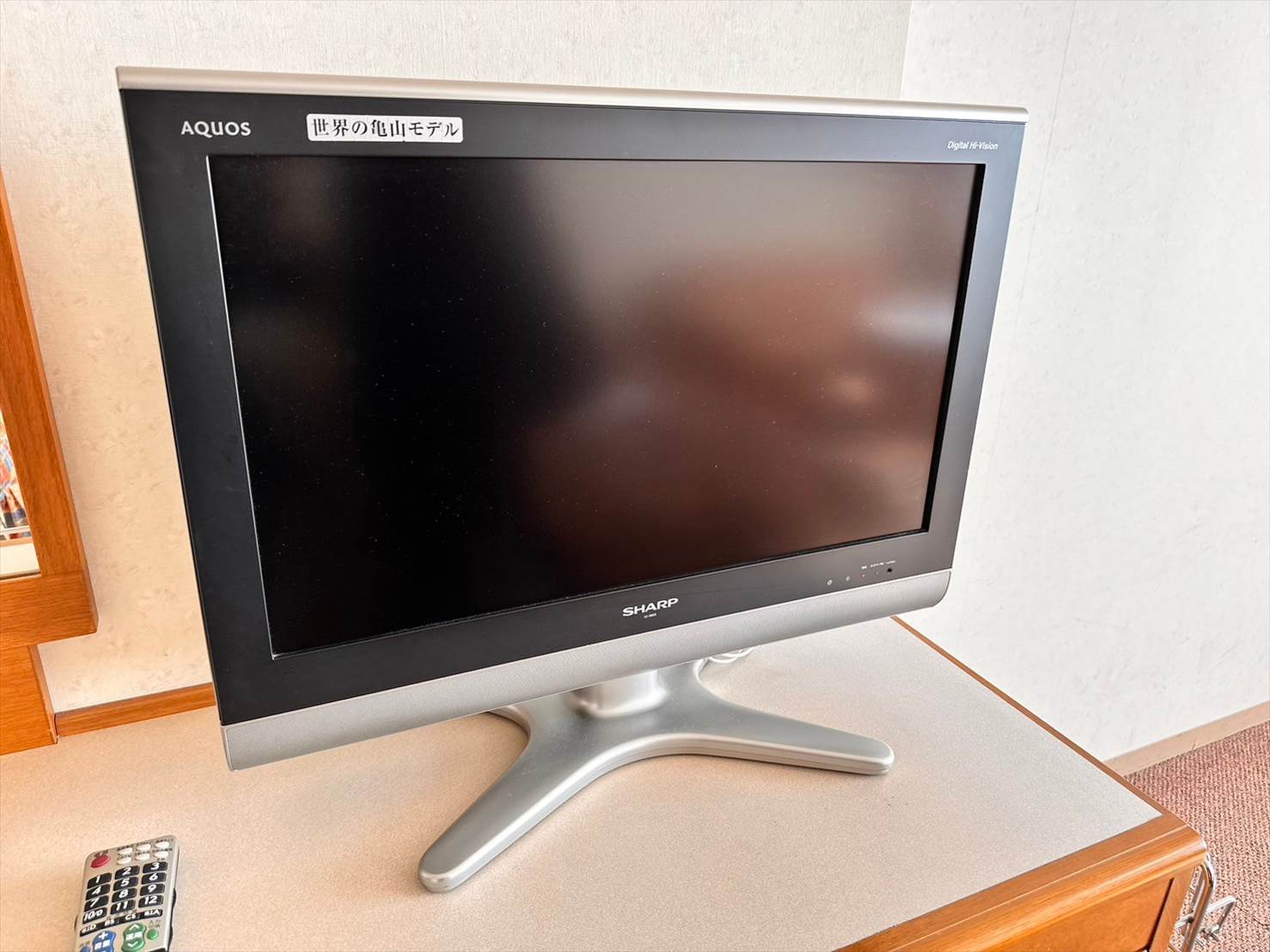 テレビは少々小さめサイズではありましたが、ベッドに向かい合う形で用意されていました。世界の亀山モデル!!