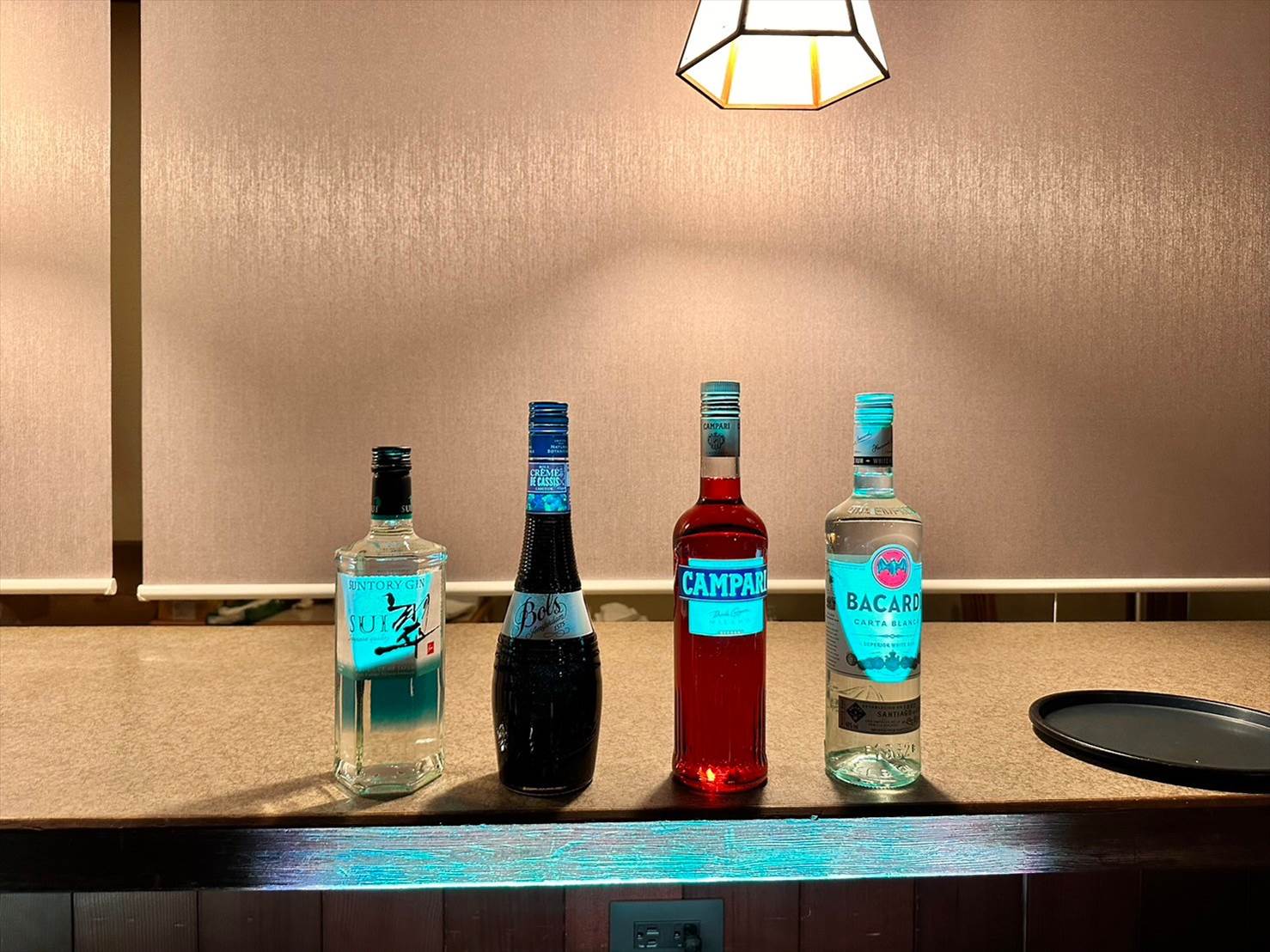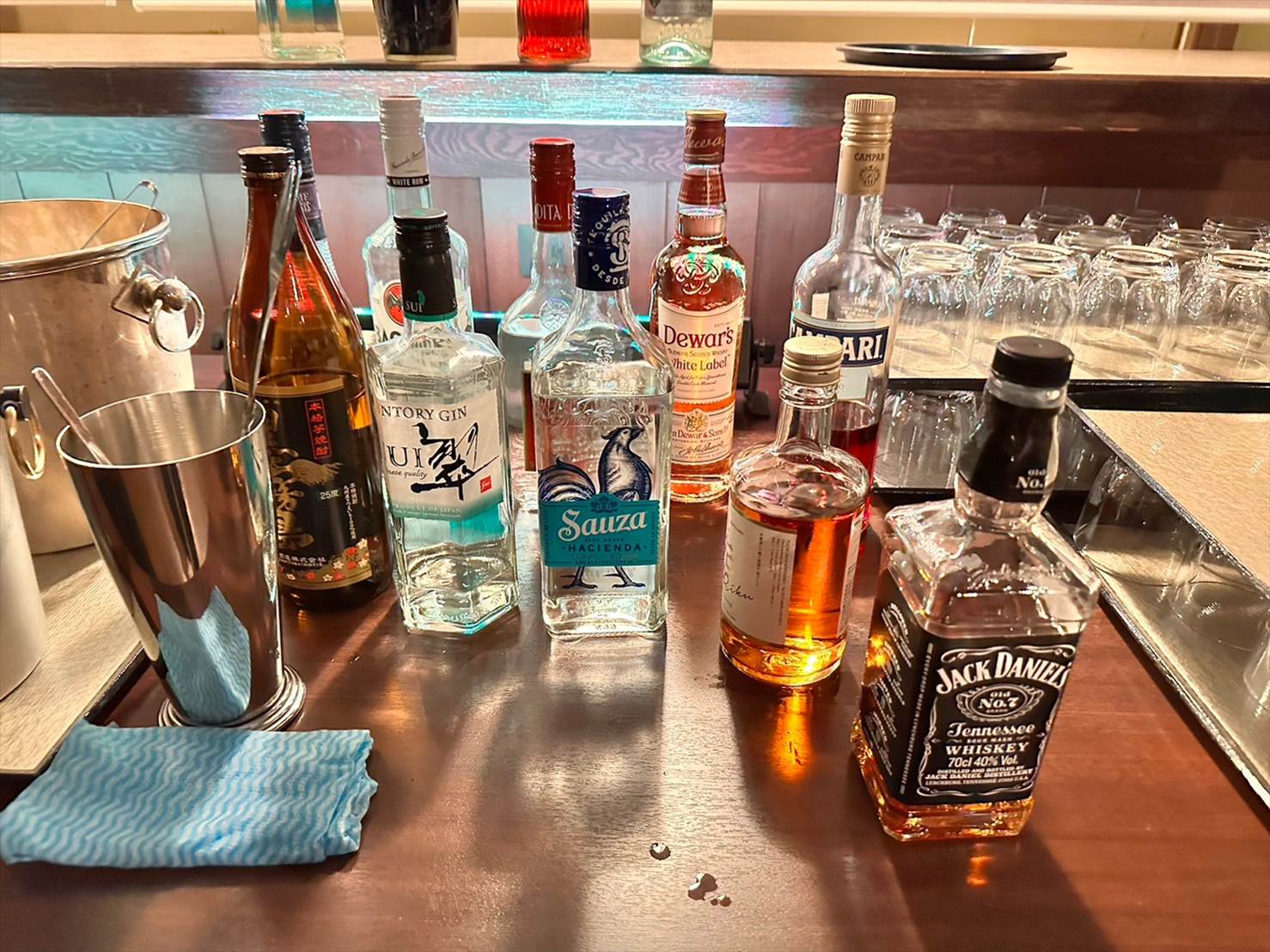 イブニングタイムには無かったおしゃれなリキュールやウイスキー等のお酒がずらりと並んでいました。