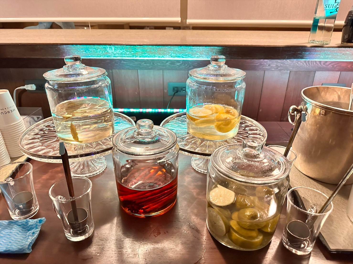 ▲シロップ漬けのフルーツも提供され、まさしくバーの雰囲気で素敵でしたね!