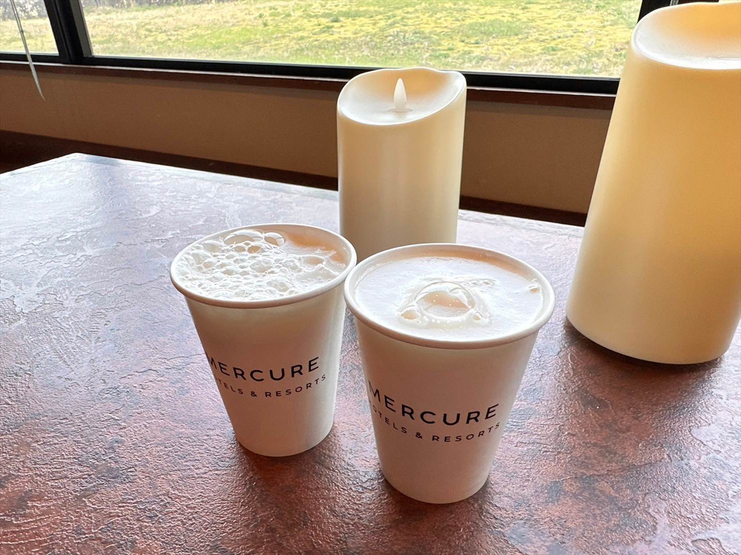 メルキュールのロゴ入り紙コップでいただくスタイルでした。