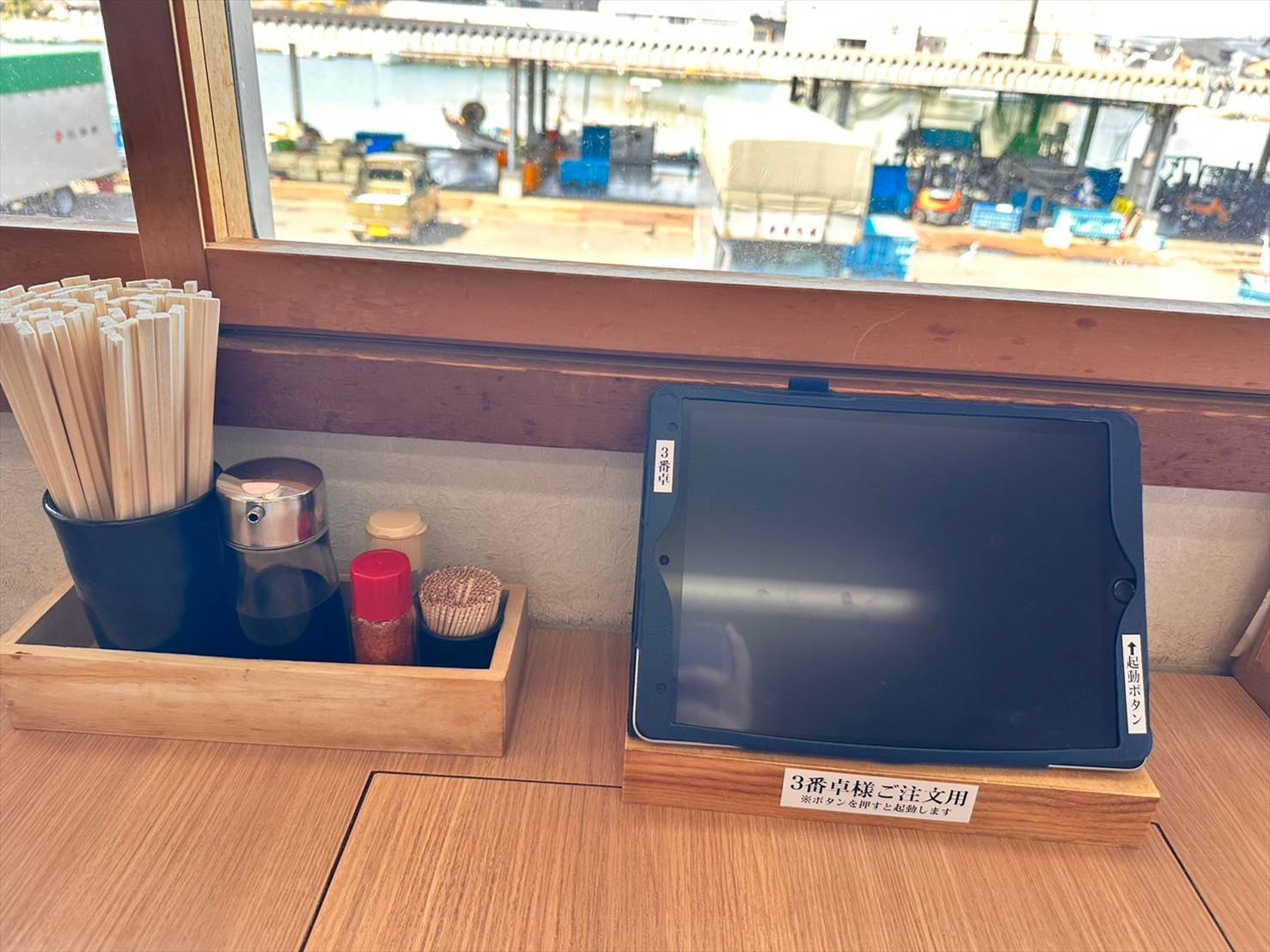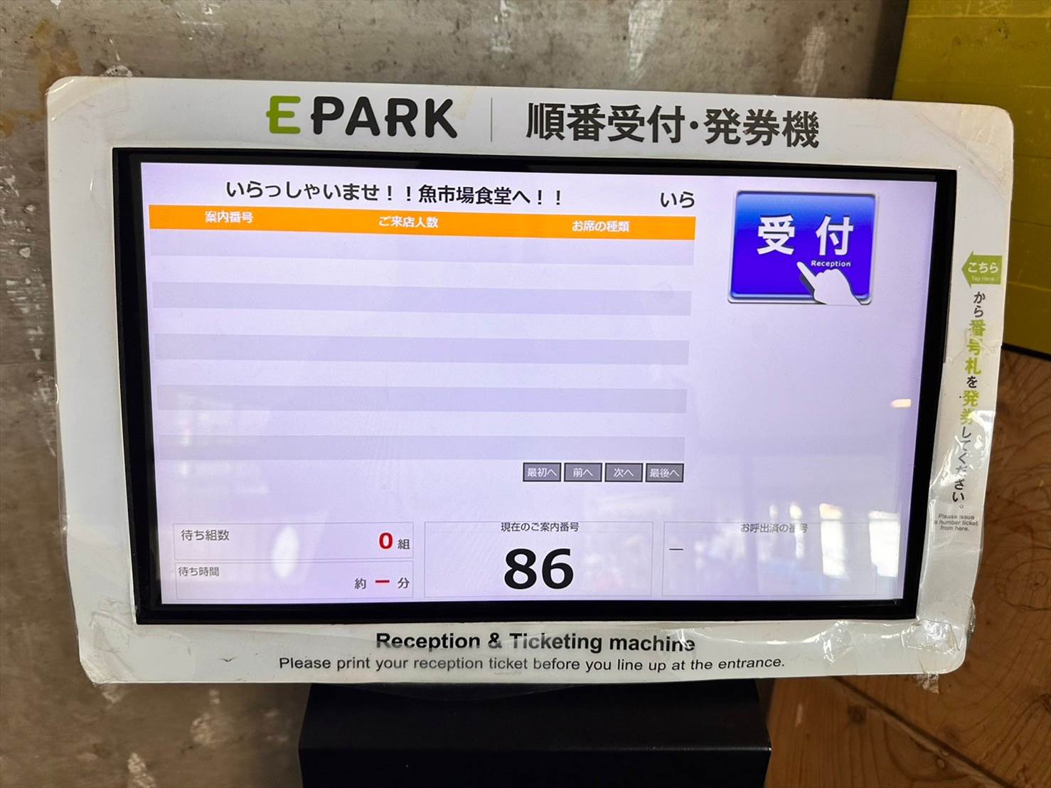 ▲氷見魚市場食堂は大変人気で混み合うお店なので、本来であればこちらの機械で順番待ちの受付をして待つことになります。