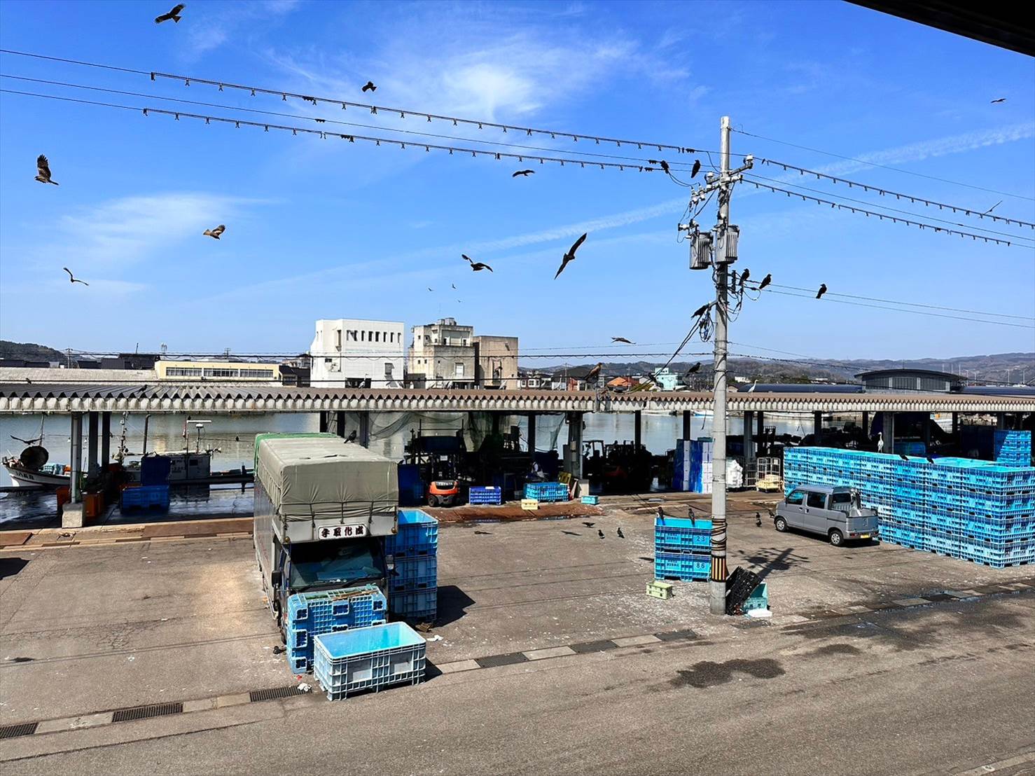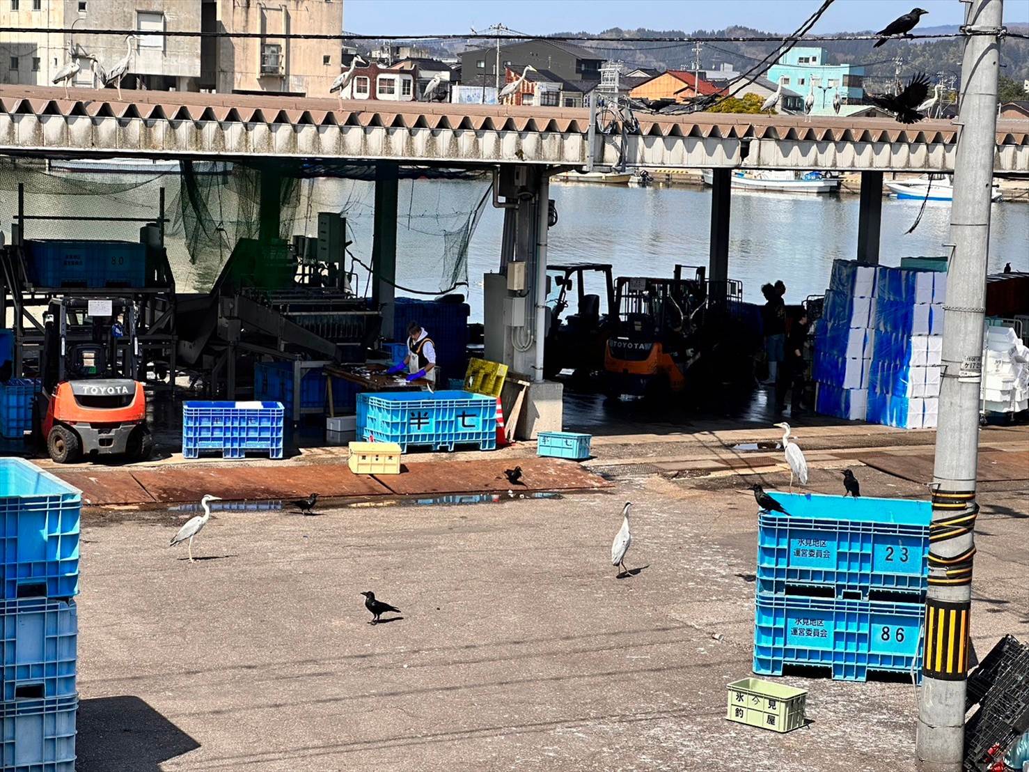 ▲たまたま窓側の席に案内されたため、ちょうど魚が水揚げされる様子を眺めることもできちゃいました。