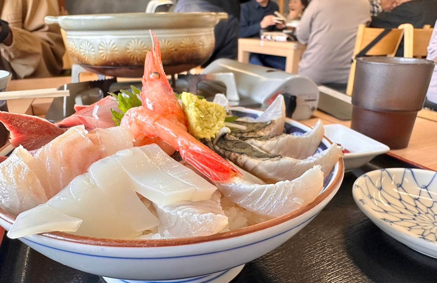 ▲名物は「氷見浜丼定食」という、季節に応じておすすめ・新鮮な海鮮を盛り付けた丼と土鍋漁師汁がセットになったもの。