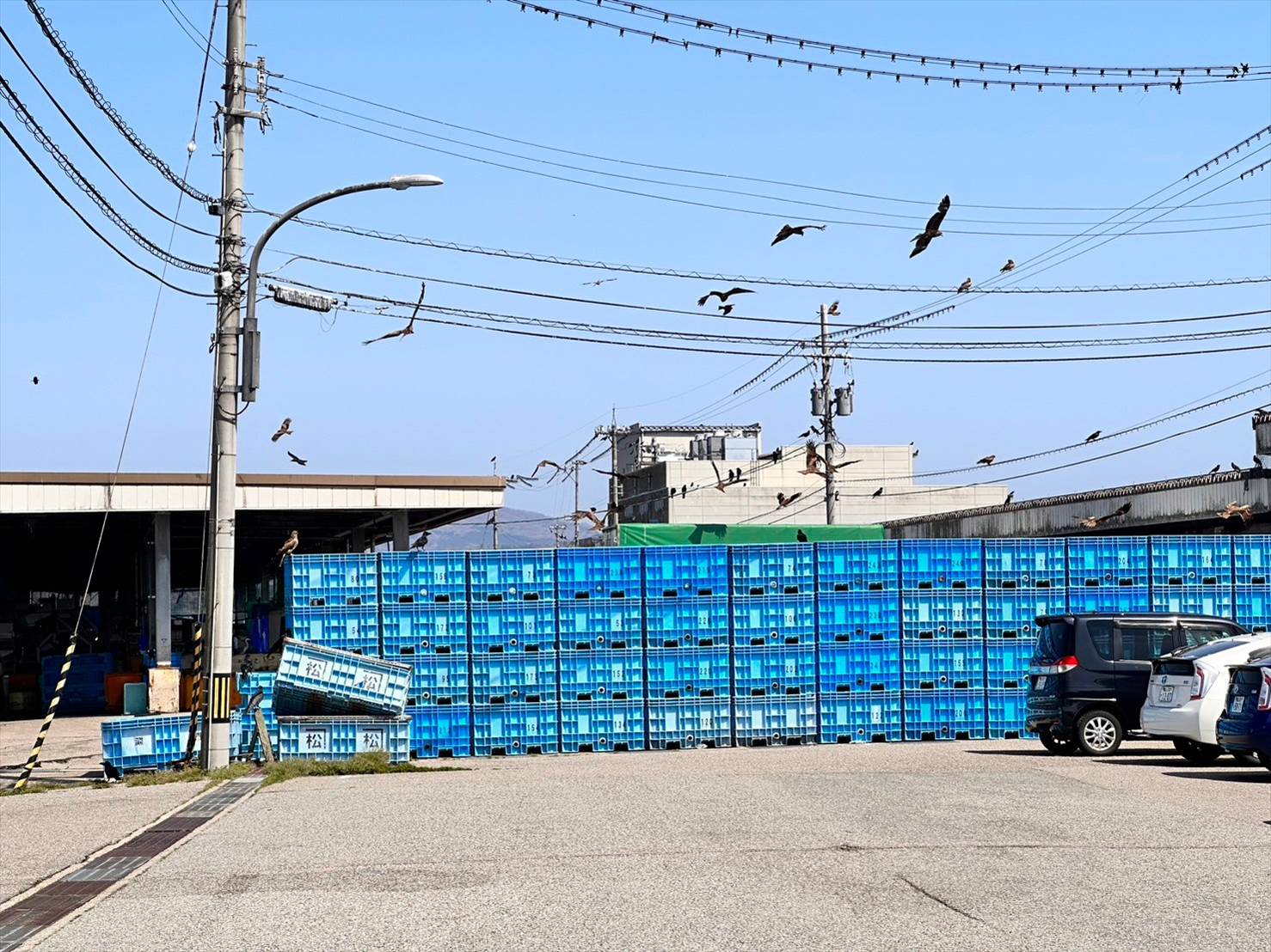 ▲…とは言いましたが、どちらかというと、水揚げ途中に魚を食ってやろうと虎視眈々と狙い続ける鳥の皆様方を眺めておりました。笑