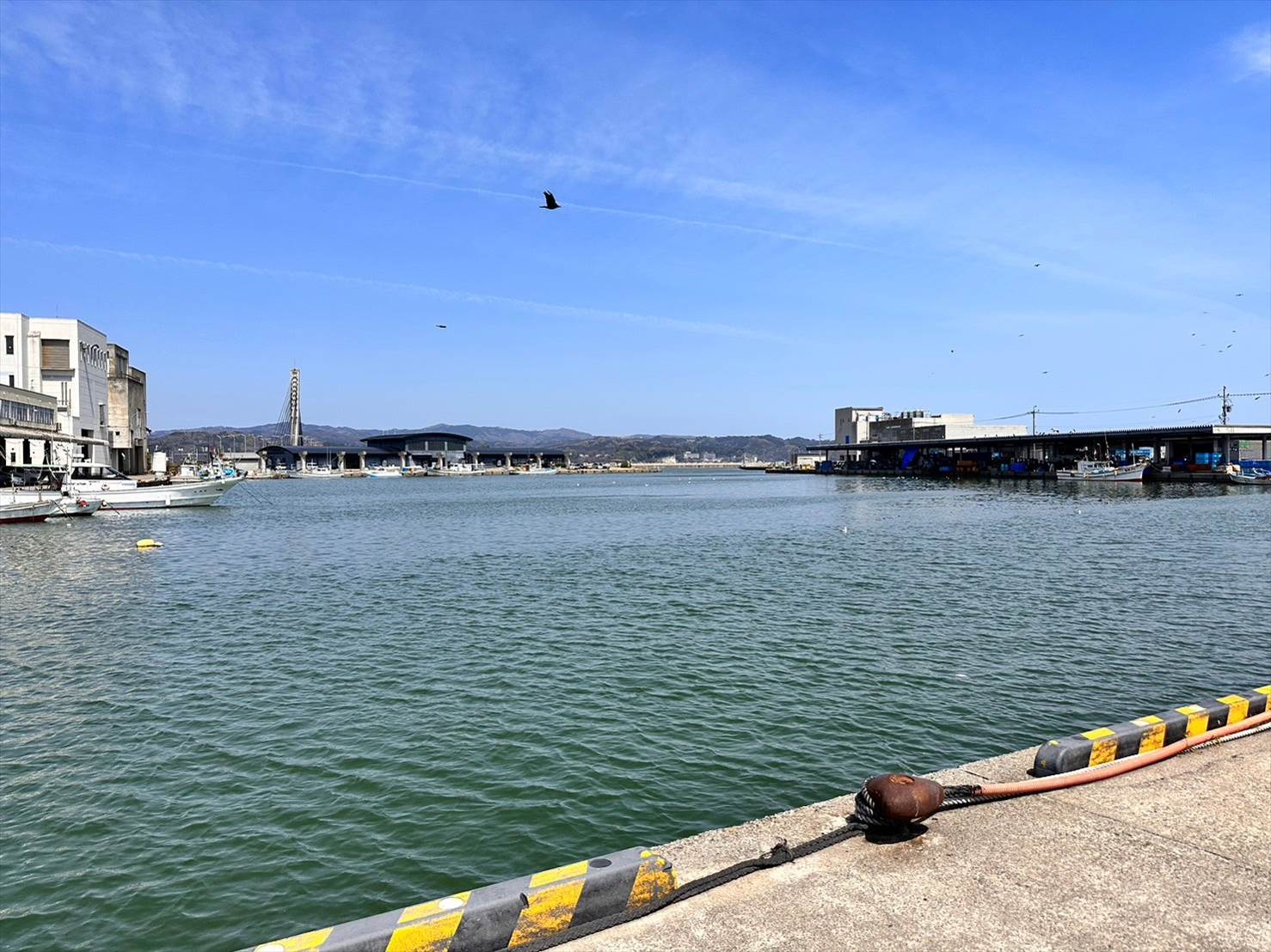 氷見魚市場食堂は海沿いの魚市場に位置しているため、周囲は漁港らしい開放的な光景でしたね~!