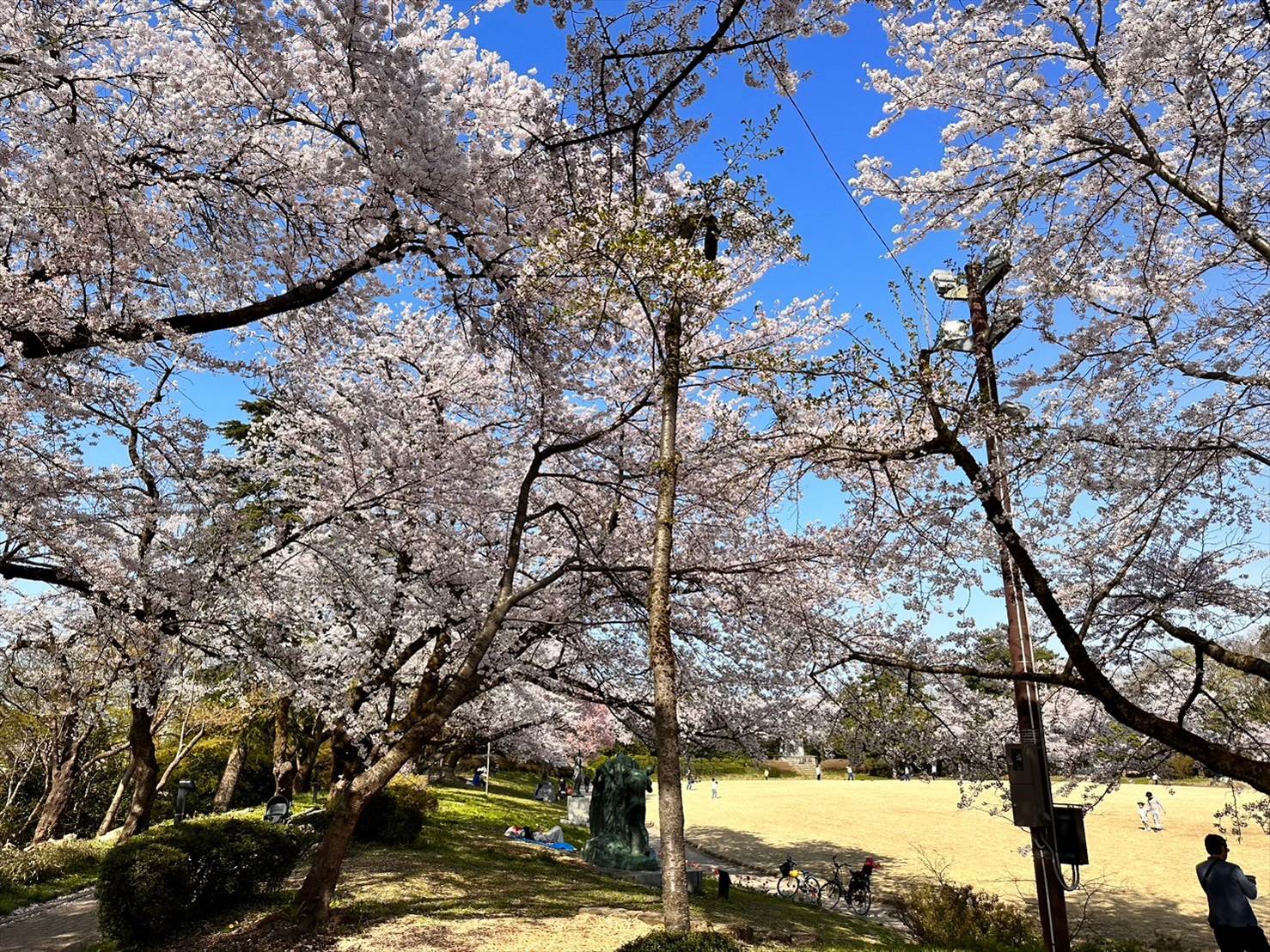 高岡駅からも近い市街地のど真ん中に位置していて、ちょうど私たちが訪れたタイミングでは公園内の桜の花が満開で、視界いっぱいに咲き乱れていました…🌸