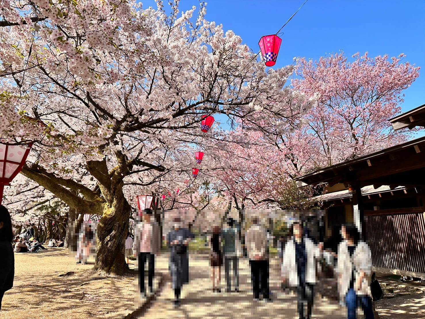 ▲車を降りてすぐ、もう目の前に立派な桜の木があって、早くも期待が高まります…!