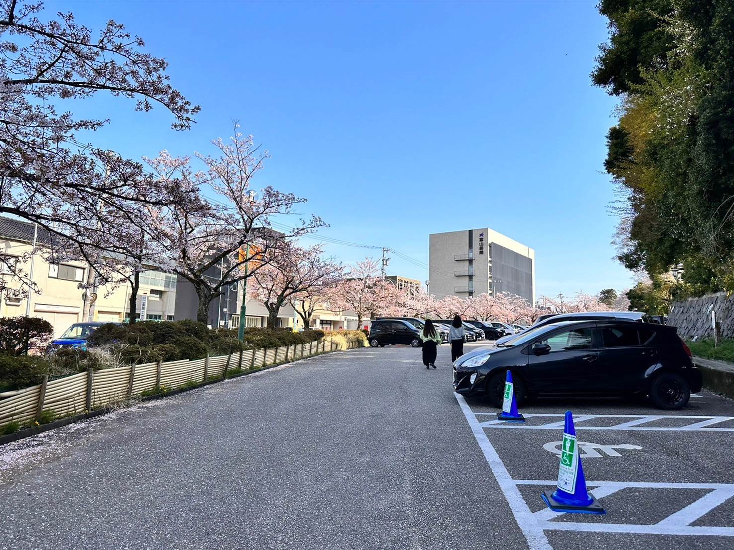 ▲高岡古城公園には無料の駐車場が併設されていますが、特にこの桜のピークシーズンは満車に注意。