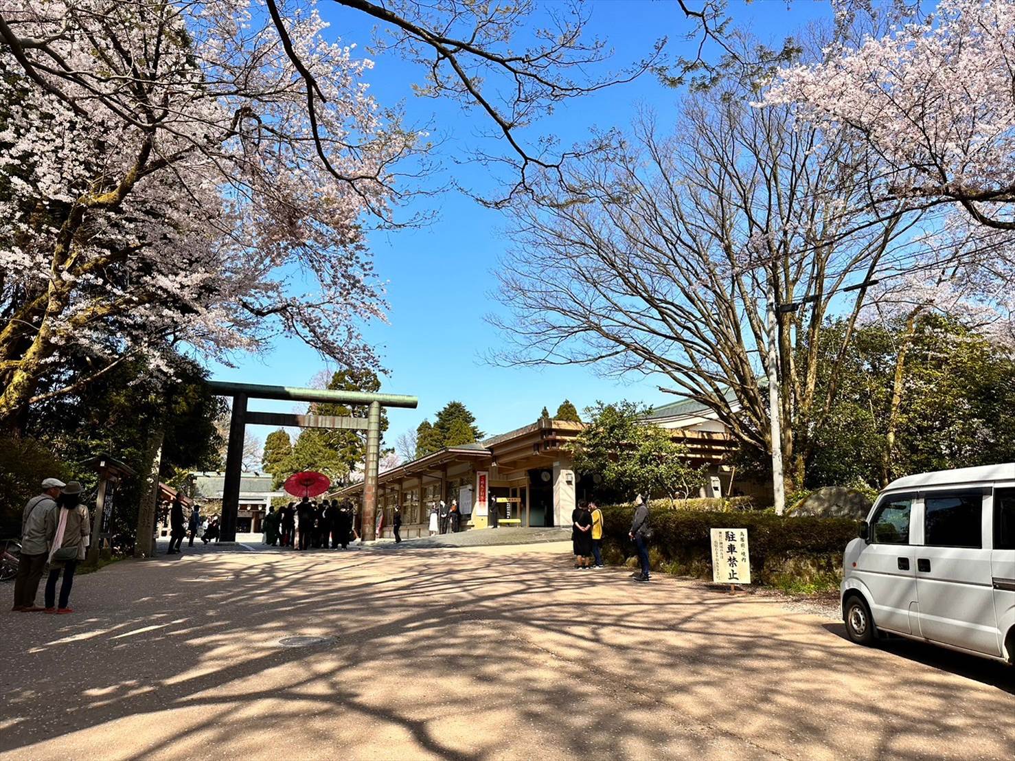 こんなに桜が綺麗に咲き誇る快晴のもとで式を挙げられるなんて素敵ですね…!