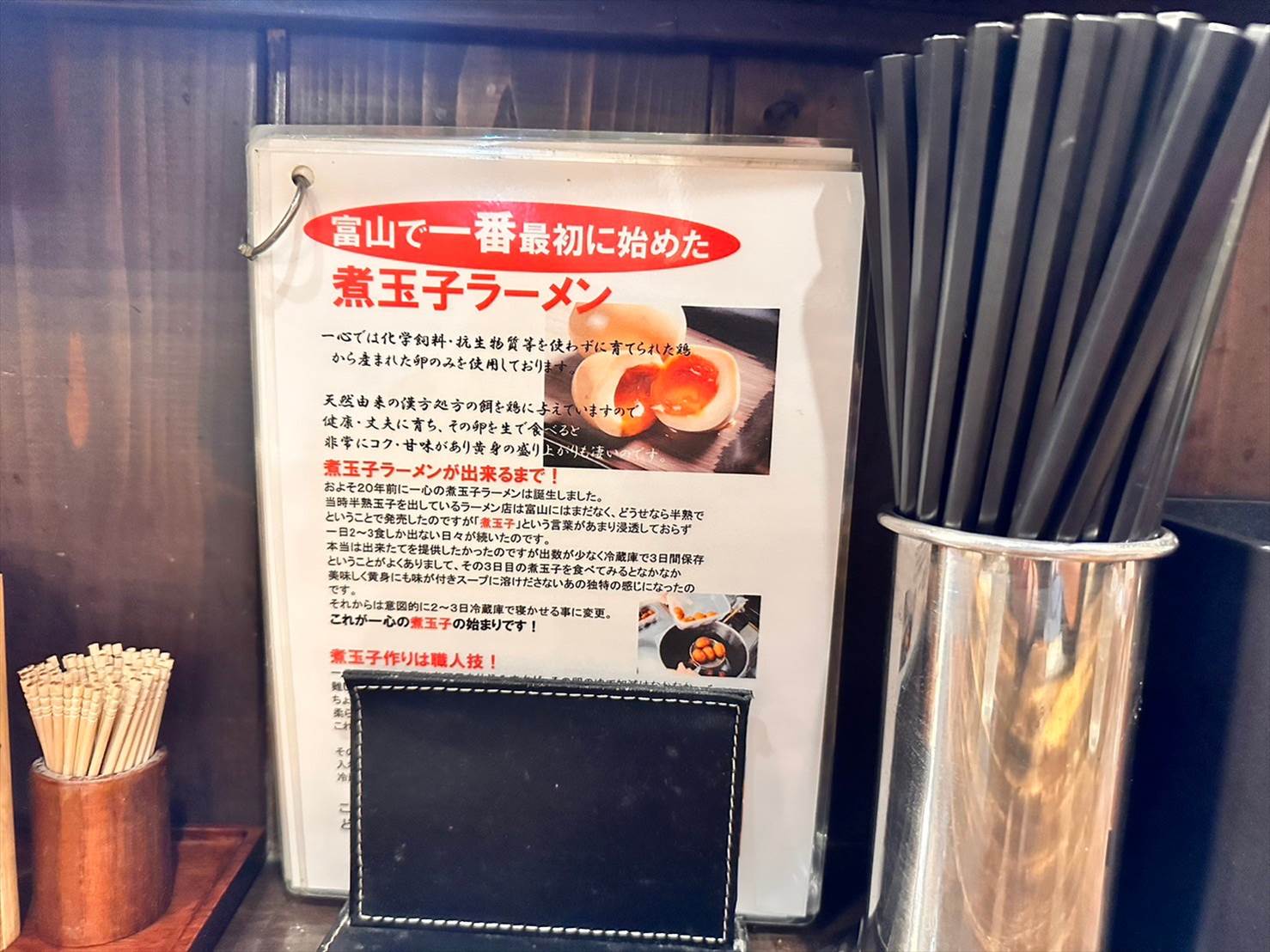 ▲なんとラーメン一心が富山で一番初めに煮玉子ラーメンを始めたんだそう!