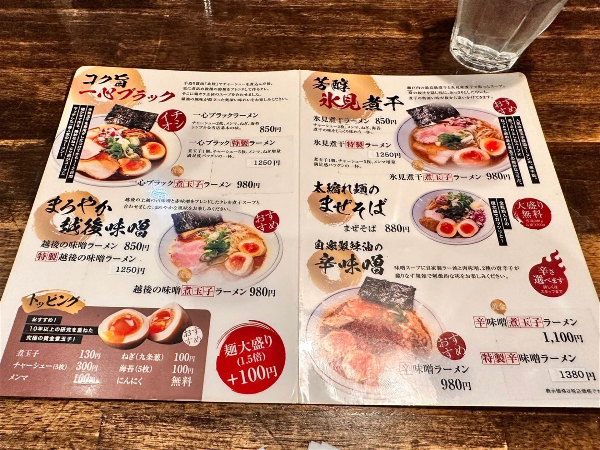 富山らしいブラックラーメンのほか、煮干し・味噌・辛味噌、更にはまぜそばまで想像以上に種類豊富なラインナップが並んでいました!