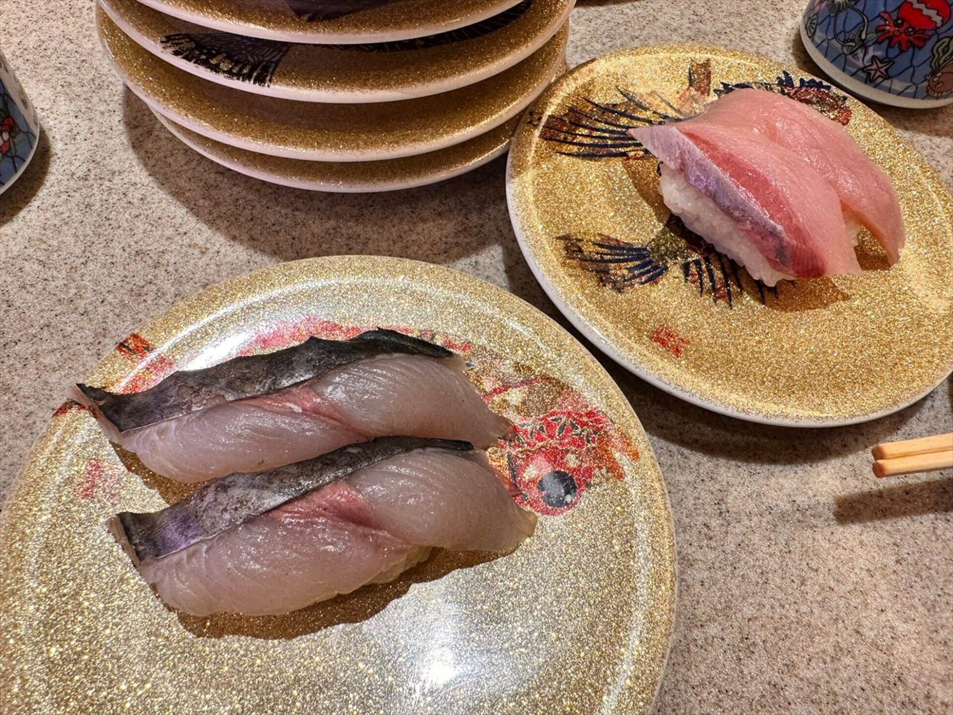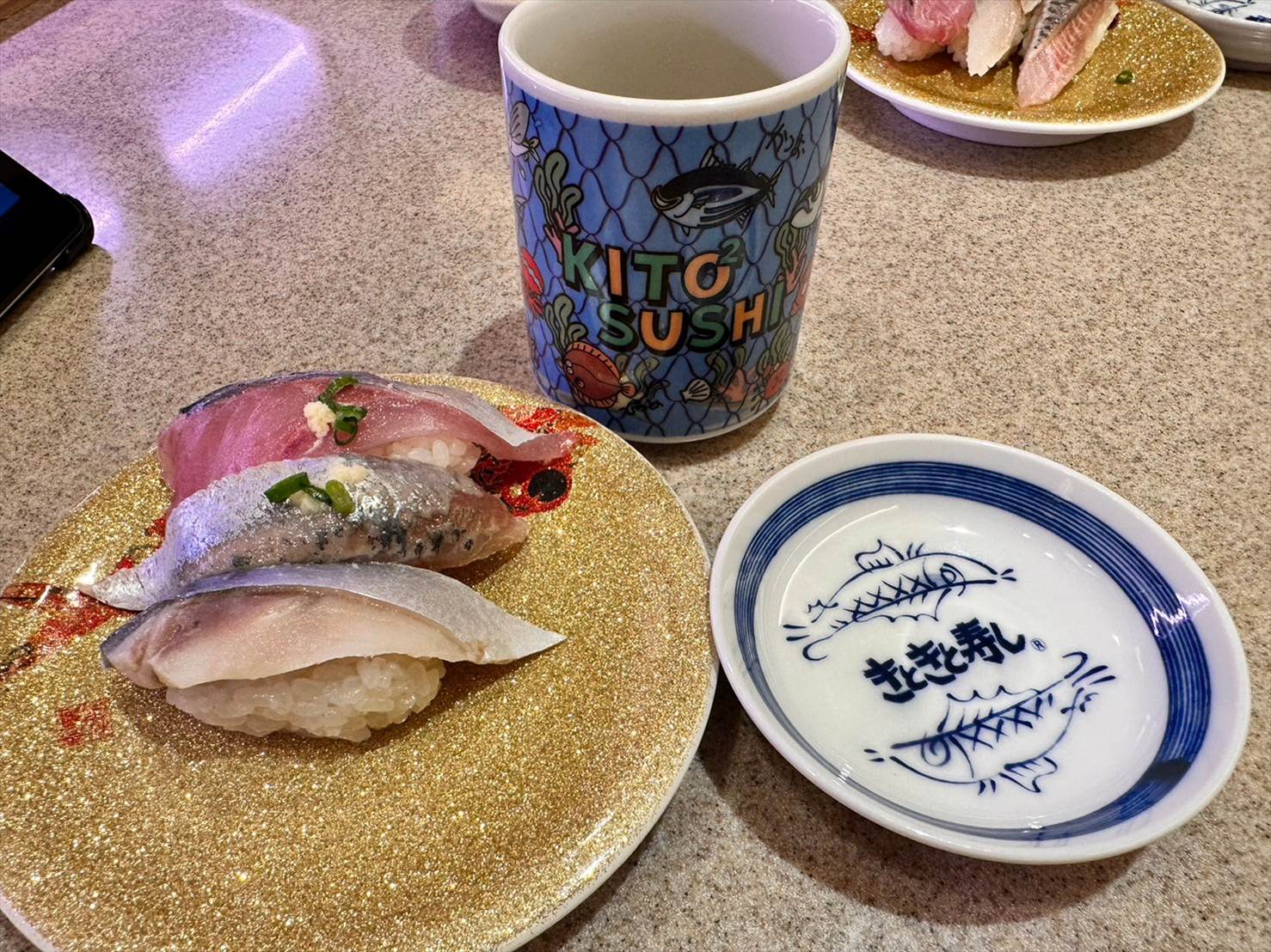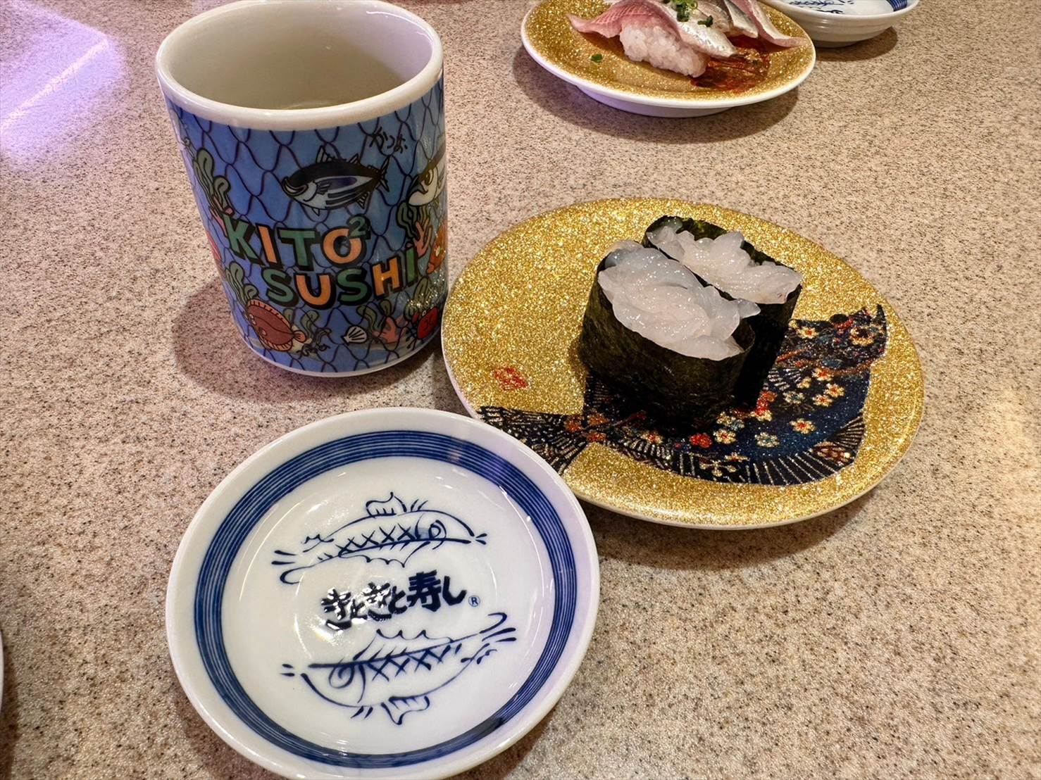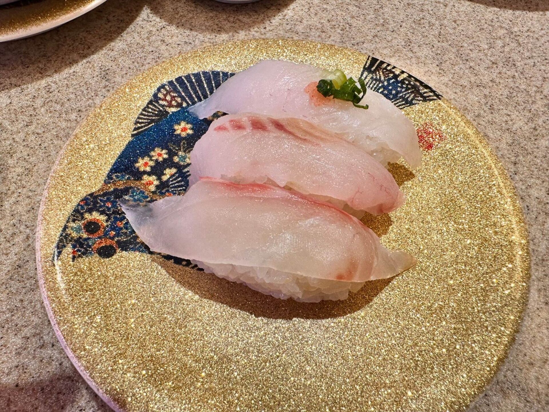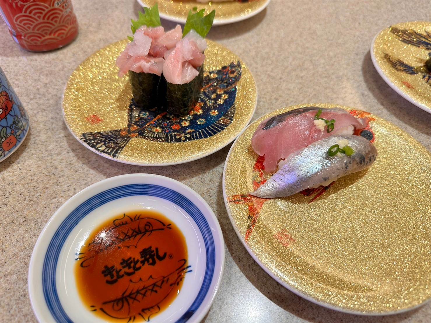 それと、これはきときと寿司ならではなのか、お皿が金色でキラキラ!!