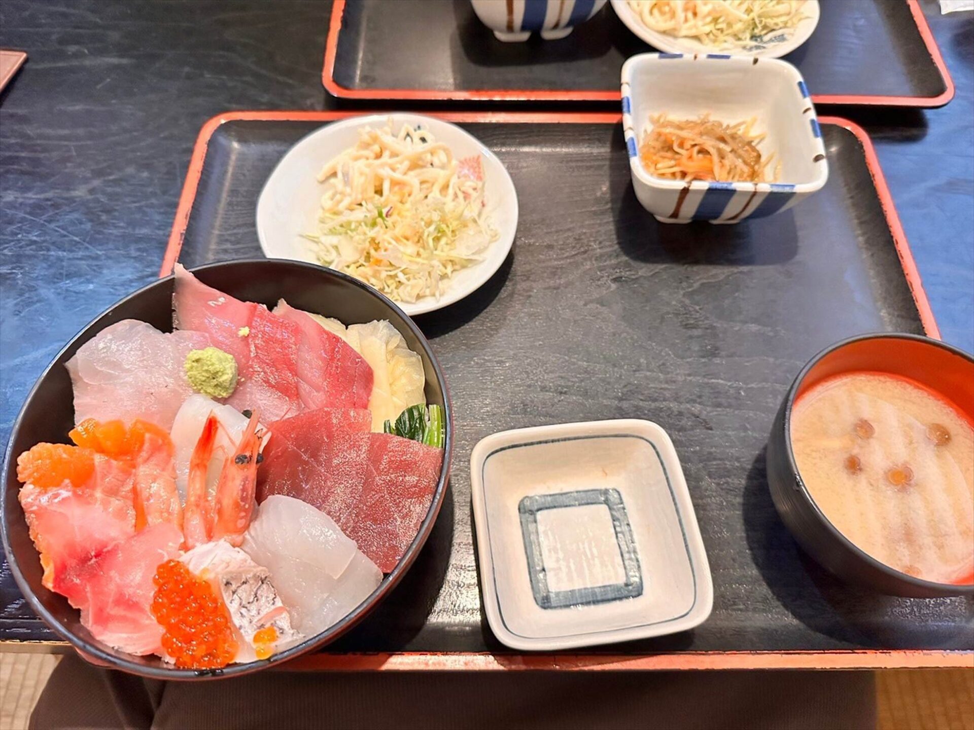 ▲1,200円の海鮮丼ランチをいただきましたが、想像以上に沢山の種類の海鮮がのっていて驚き…!まさか鯛やいくらまであるとは。