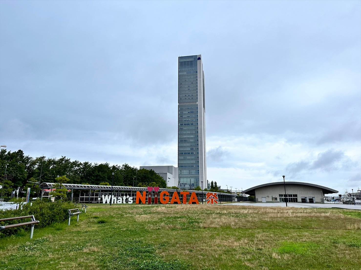 めちゃめちゃお昼なのに空が明らかに暗いですが(笑)、ひとまず「What's NIIGATA」のオブジェクトを撮影しておきます。