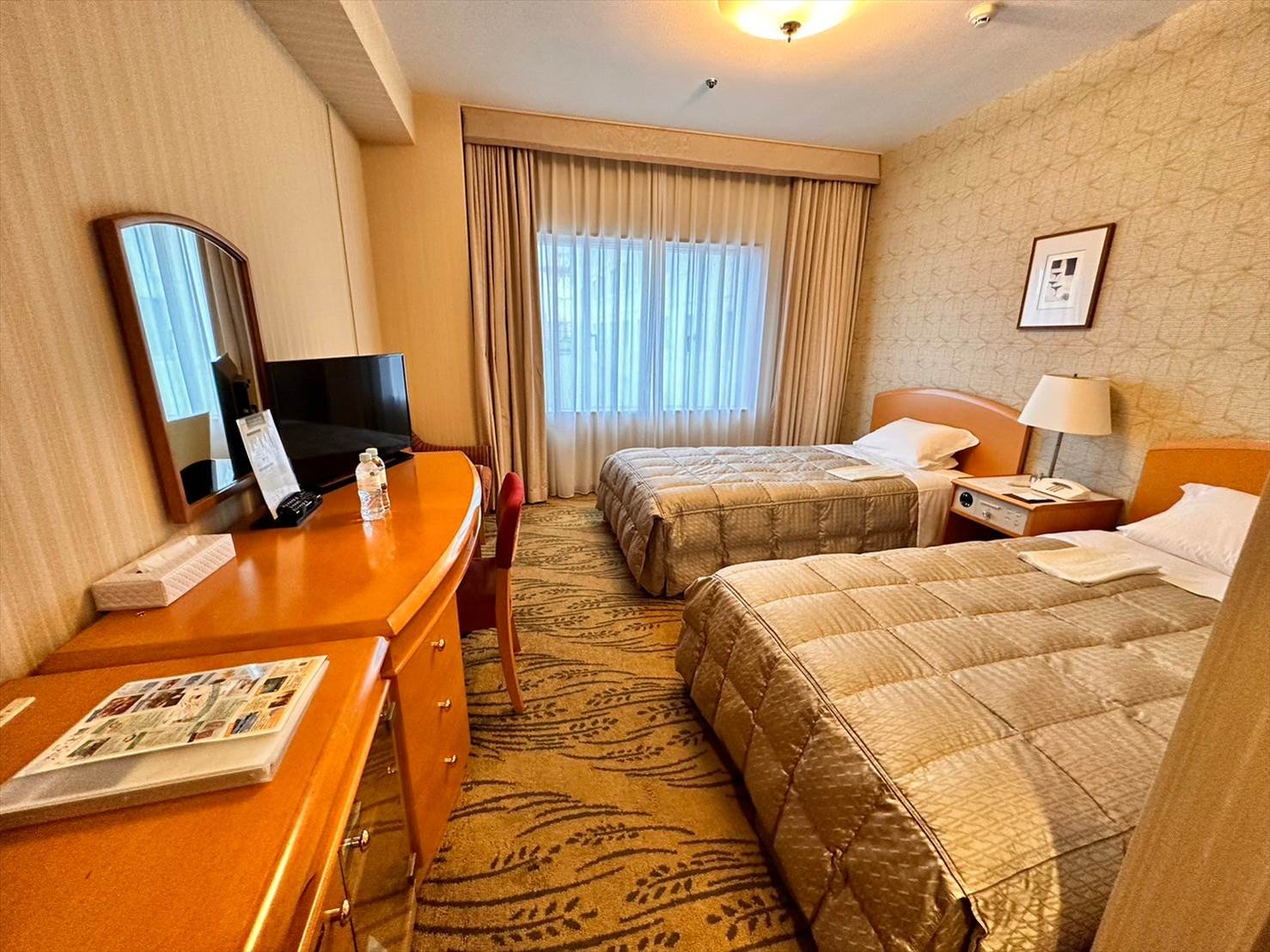 ▲お部屋はツインタイプ。ベッド2台に作業机もあり、広々していて過ごしやすかったです◎