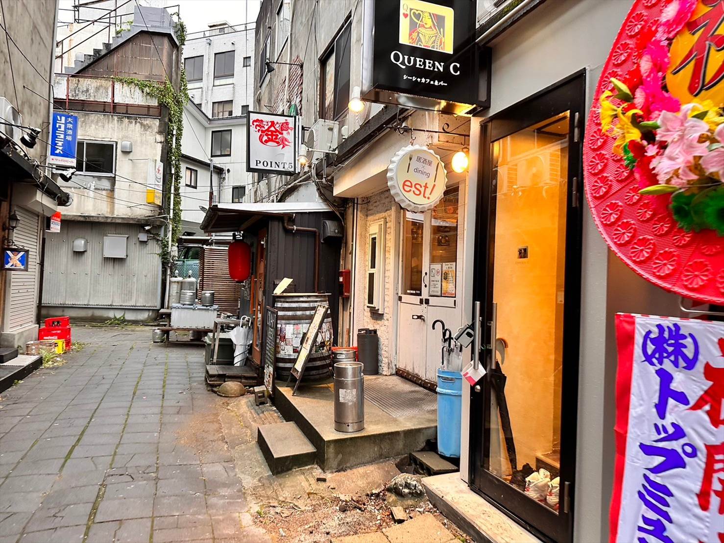 少し細い路地に入った場所に「居酒屋×dining est!」がありました!