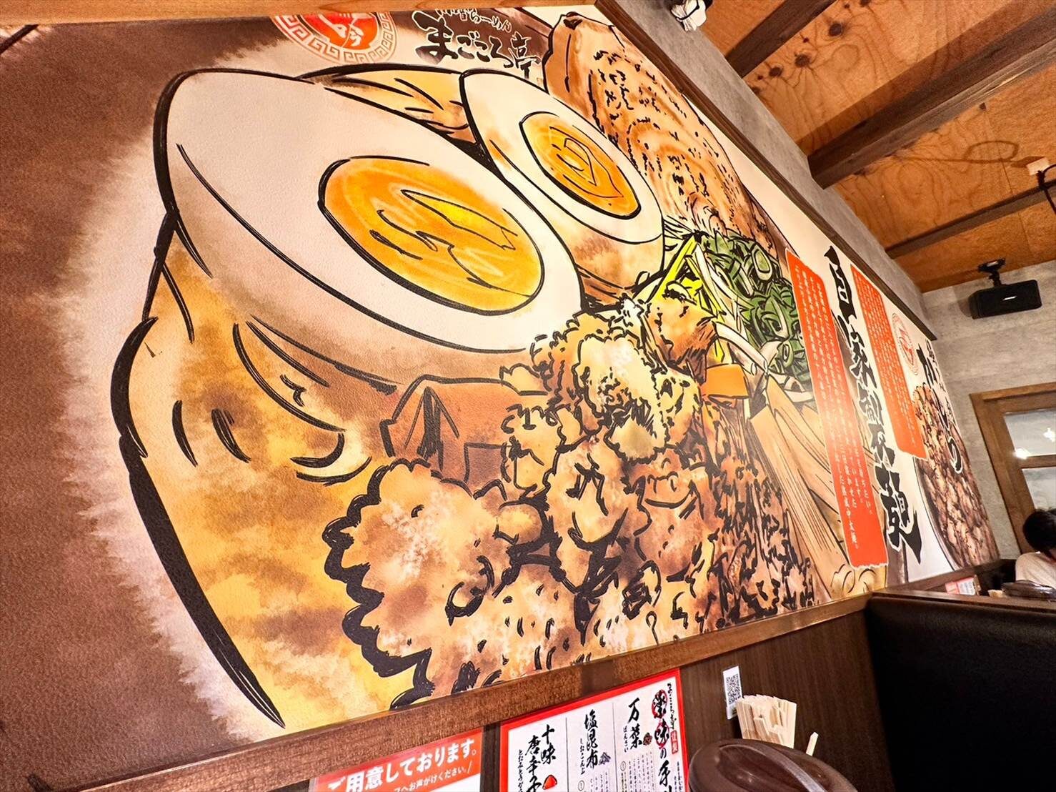 ▲お店の壁側に吟醸味噌らーめんのイラストがでかでかと描かれていて、ラーメンへの期待が高まります…!