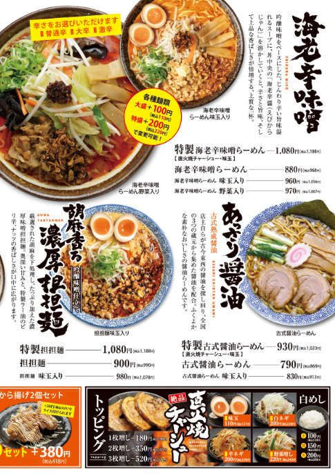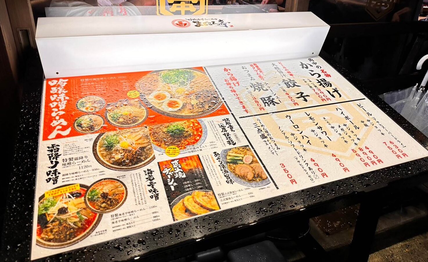 ▲「吟醸味噌ラーメン まごころ亭」の主なメニューはこちら。