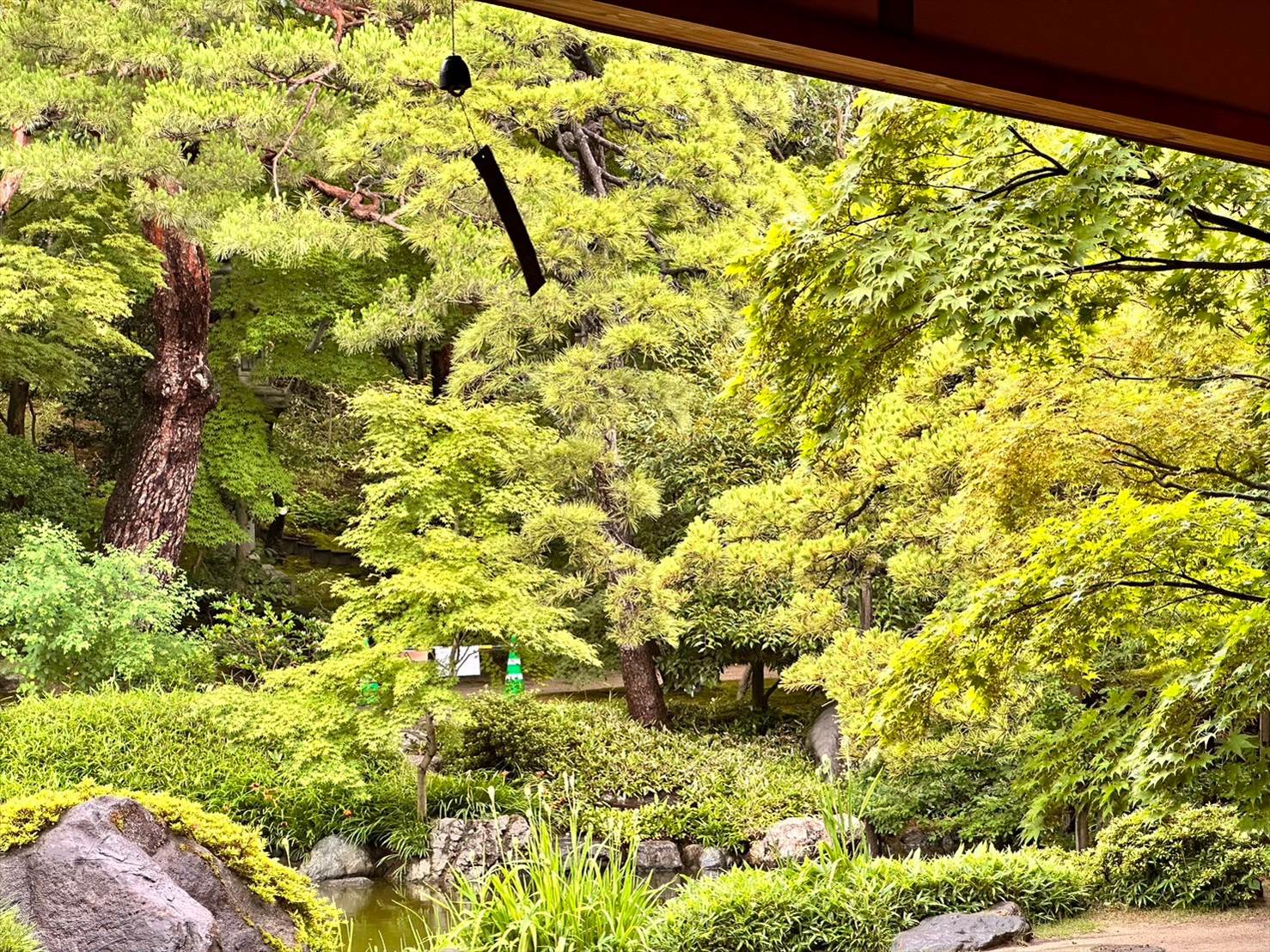 周りにいる方も一様に静かにベンチに座ったり、畳に直接腰を下ろしたり、思い思いの体勢で庭園を眺める時間を過ごしていて、これもまたなんだか良いなあと思いました。