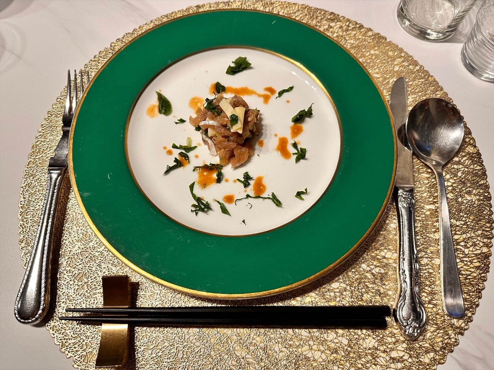 ▲一品目のお料理がこちら、「鮮魚のカルパッチョ」。