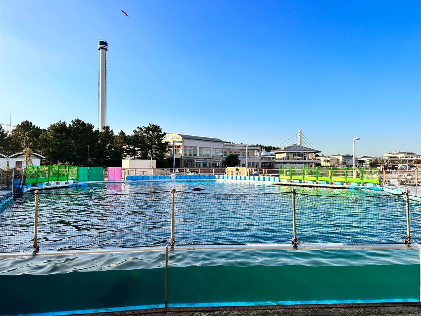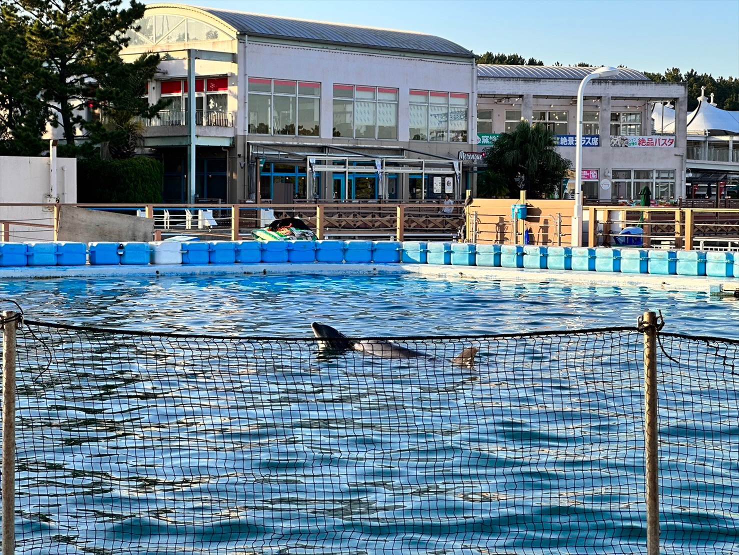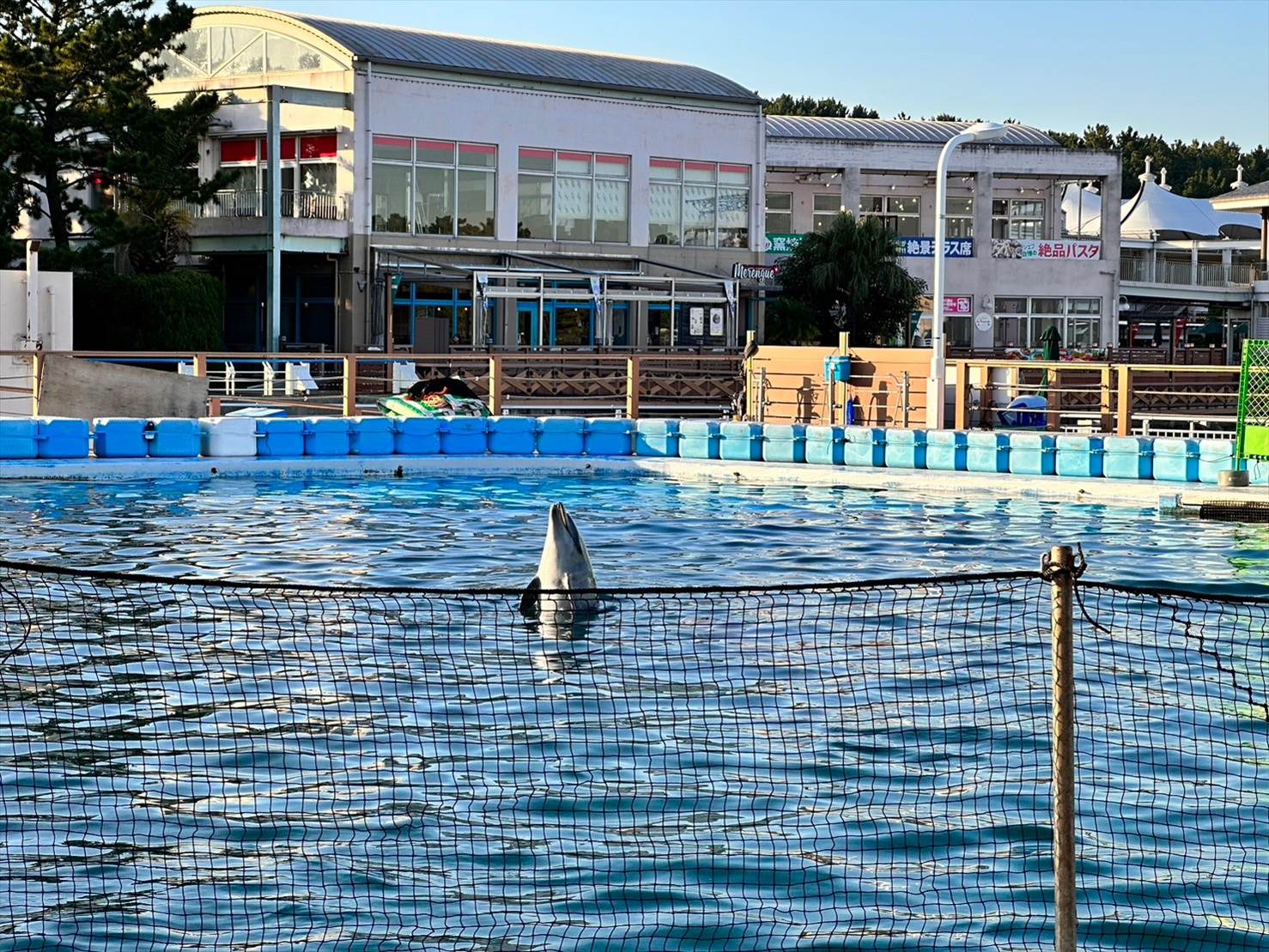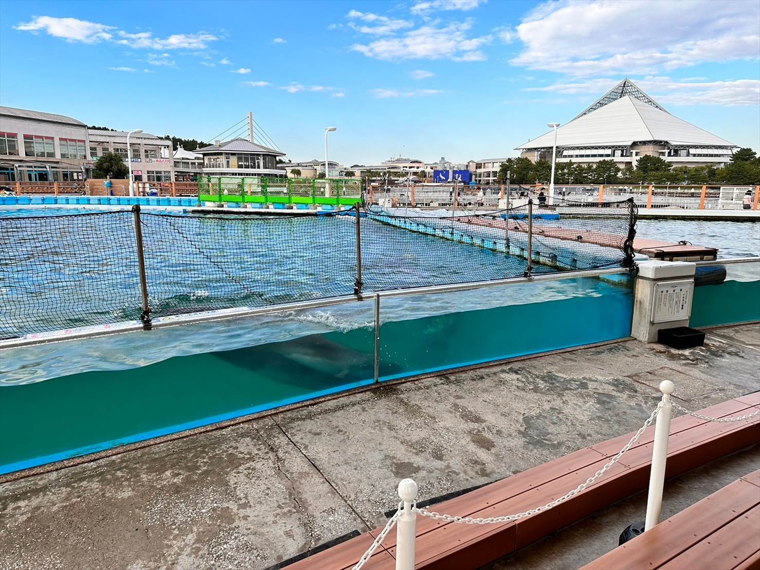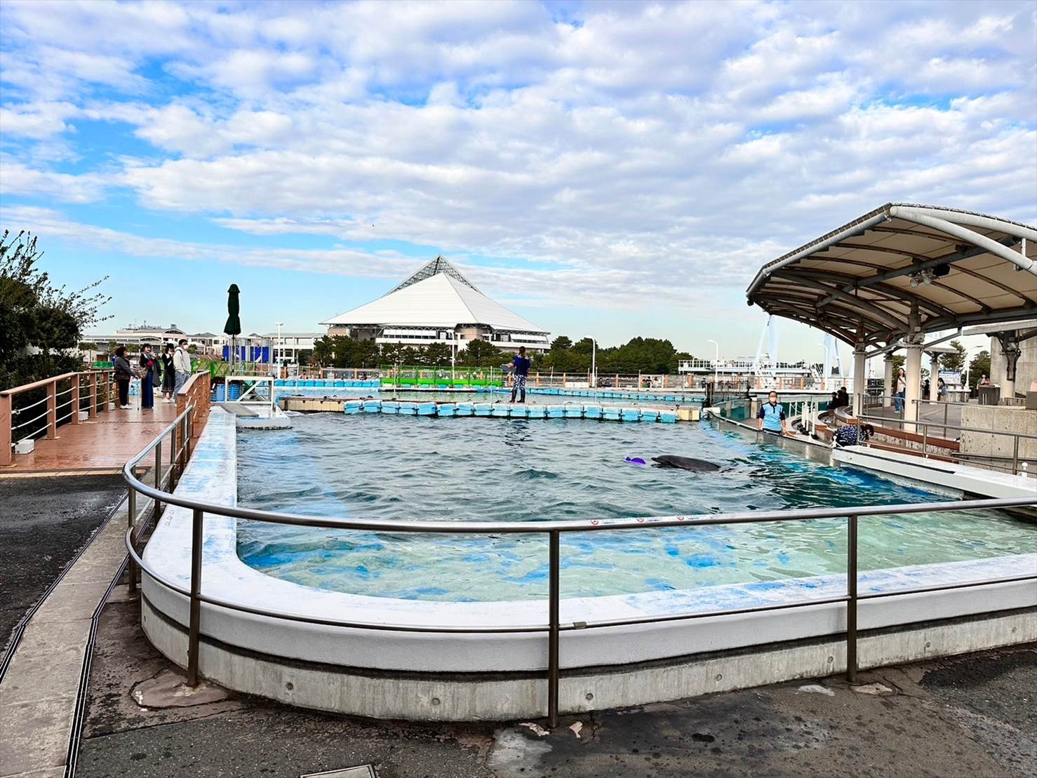 ▲この頃にはこちら側は綺麗な快晴に。青い空の下、イルカプールが映えますね…!