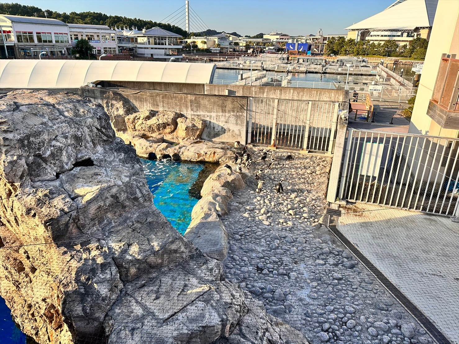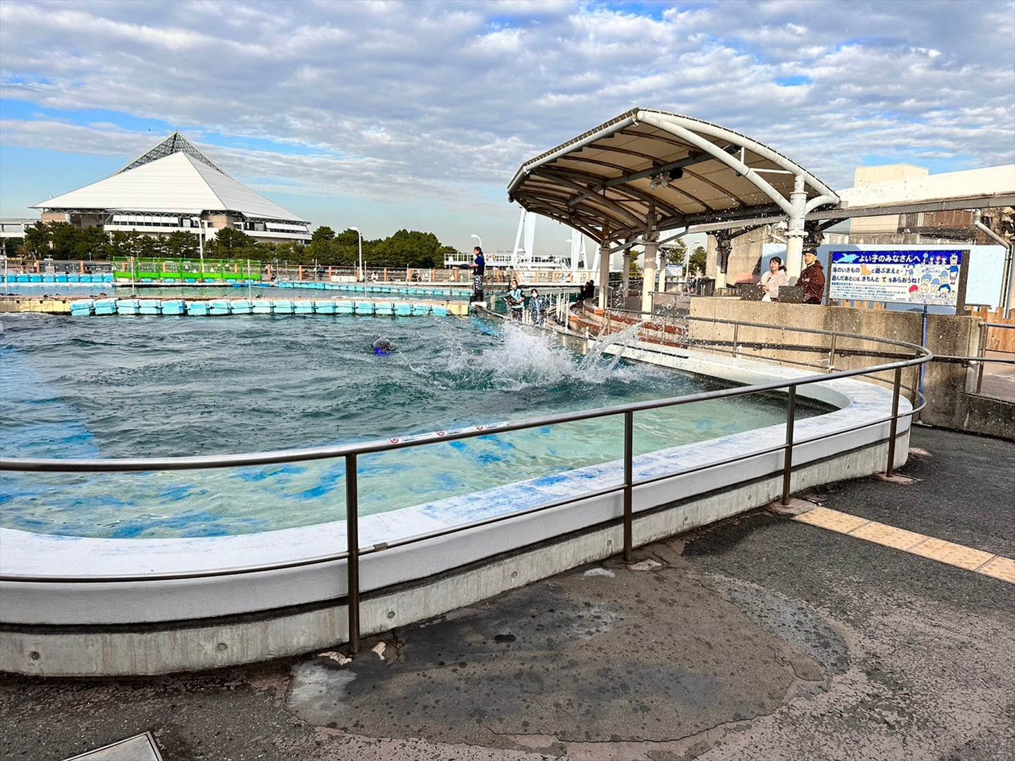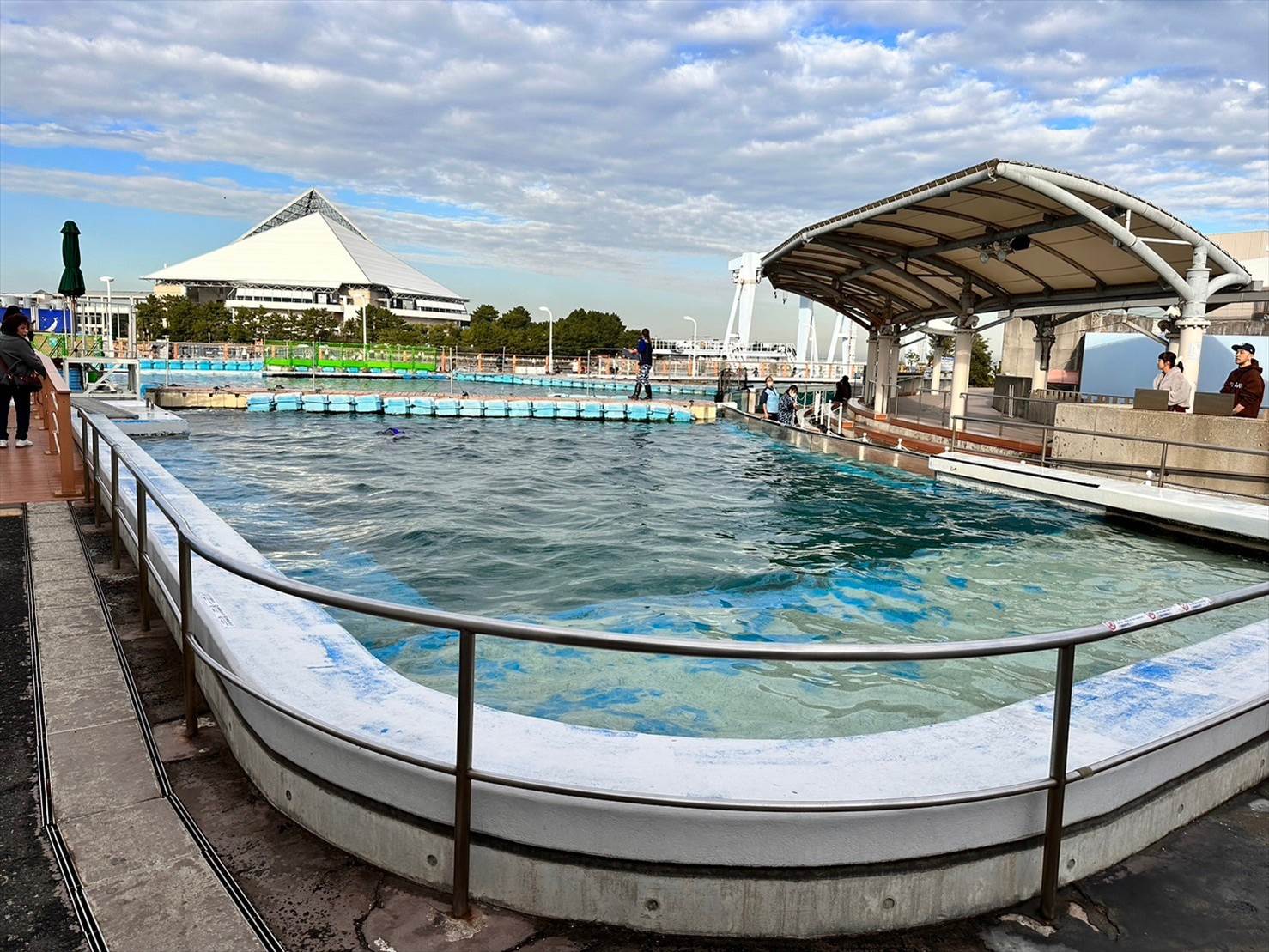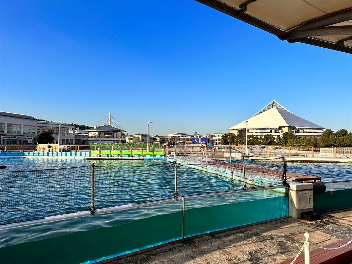 ▲この頃にはこちら側は綺麗な快晴に。青い空の下、イルカプールが映えますね…!