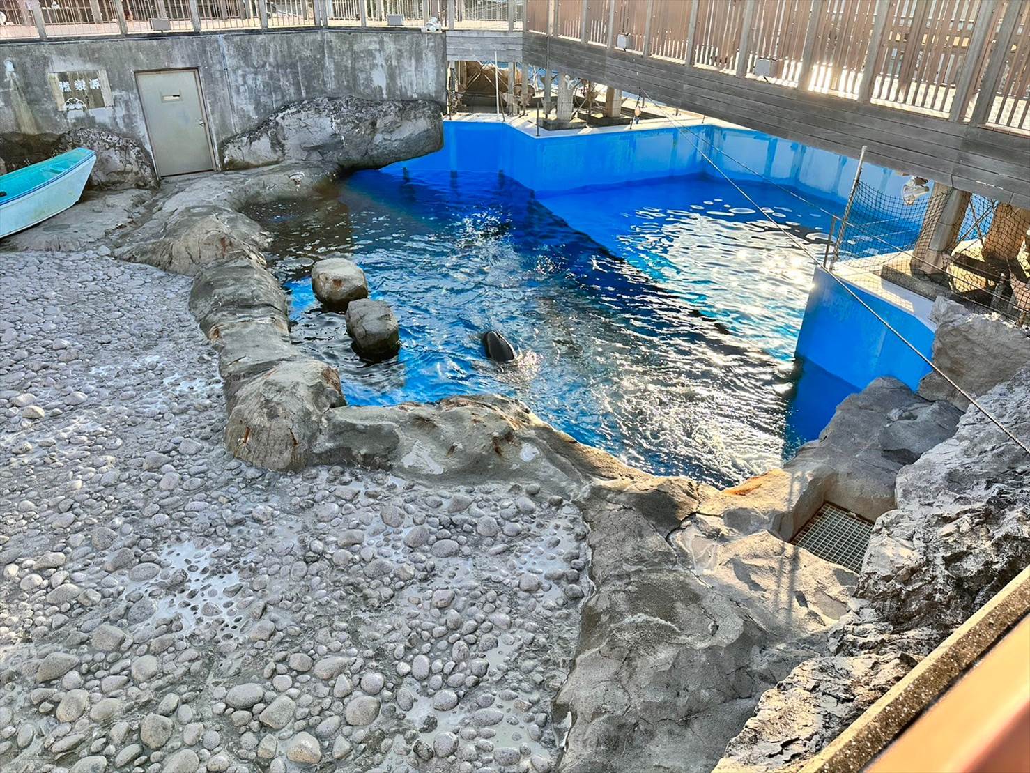 入ってすぐのこちらのプールは「ホエールオーシャン」といい、主にバンドウイルカが生活をしています。