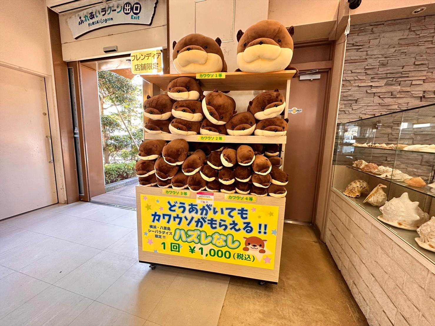 他のショップにイルカのぬいぐるみのくじはあったものの、カワウソはこのふれあいラグーンだけ。