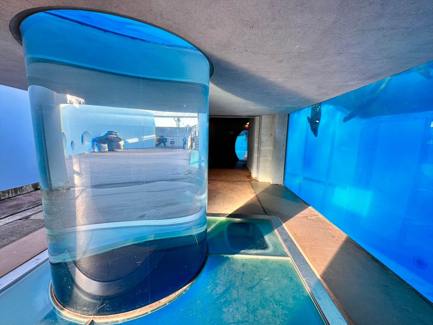 ▲運が良いとあざらしさんがこちらの円柱を通ってくれるのですが、このときは乗り気ではなかったようで、一度もこちらは通ってくれませんでしたね…。笑