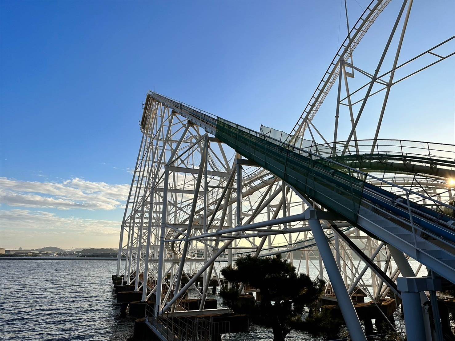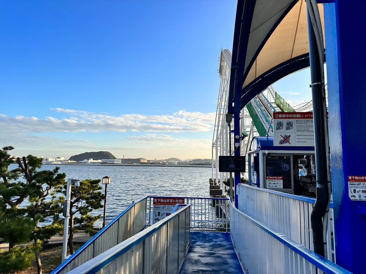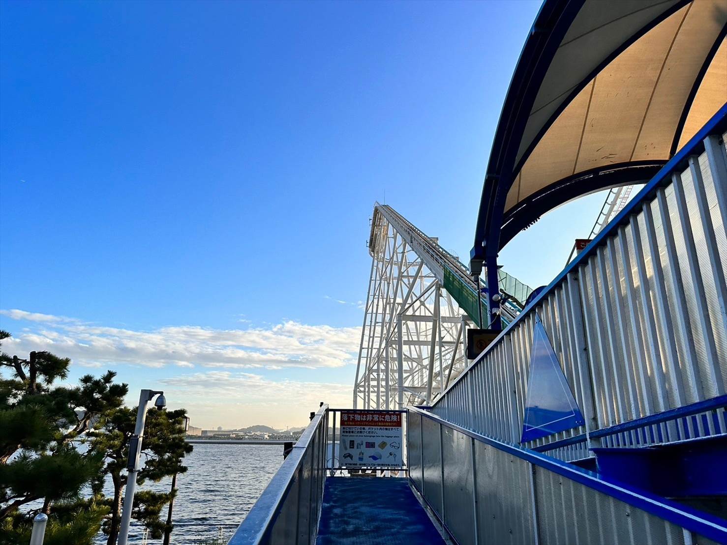 海に突き出した部分を走行するタイミングが序盤と中盤に二回ほどあり、シーパラならではの最高の爽快感を味わえました~!良いコースターです。楽しかった!
