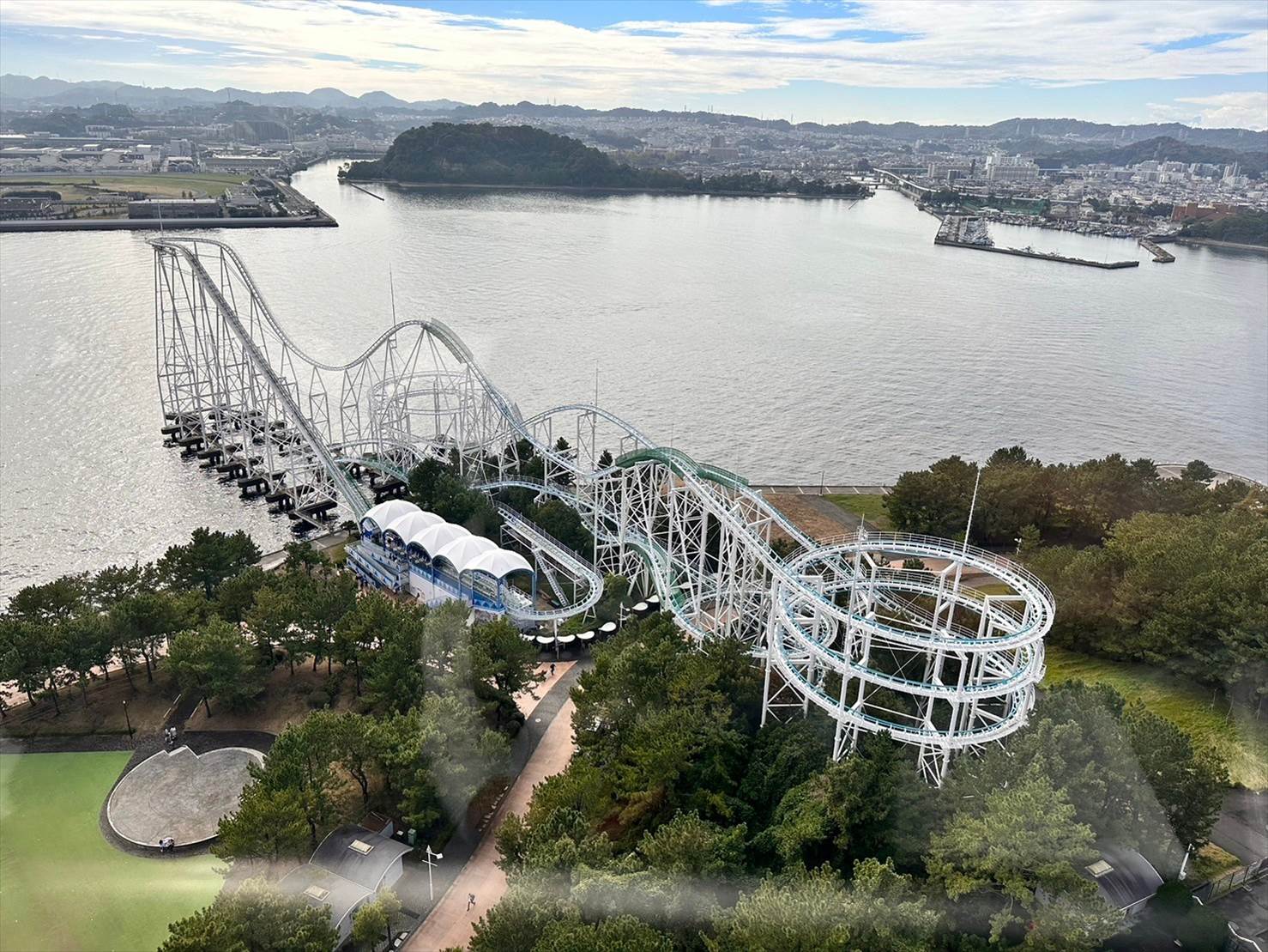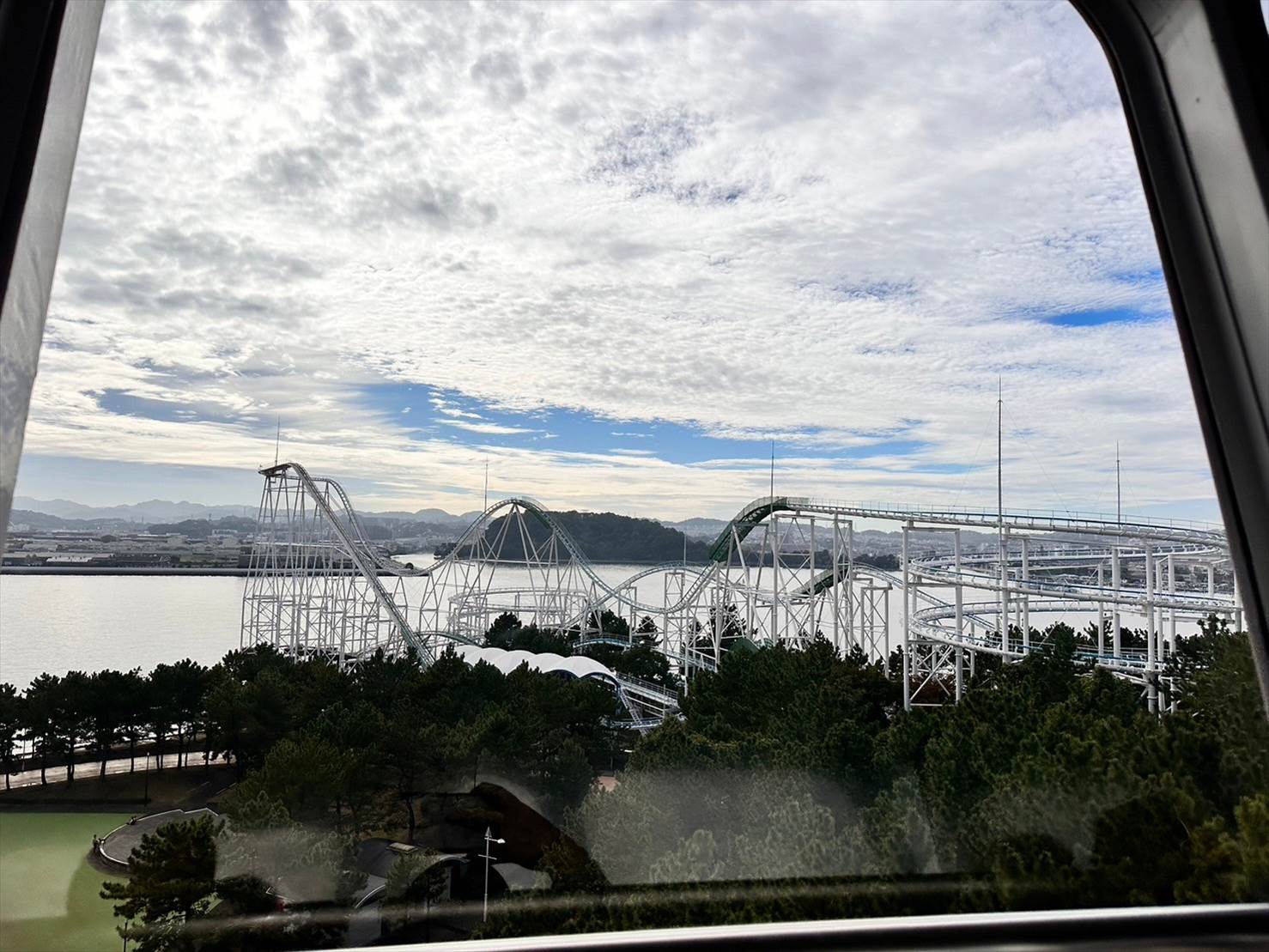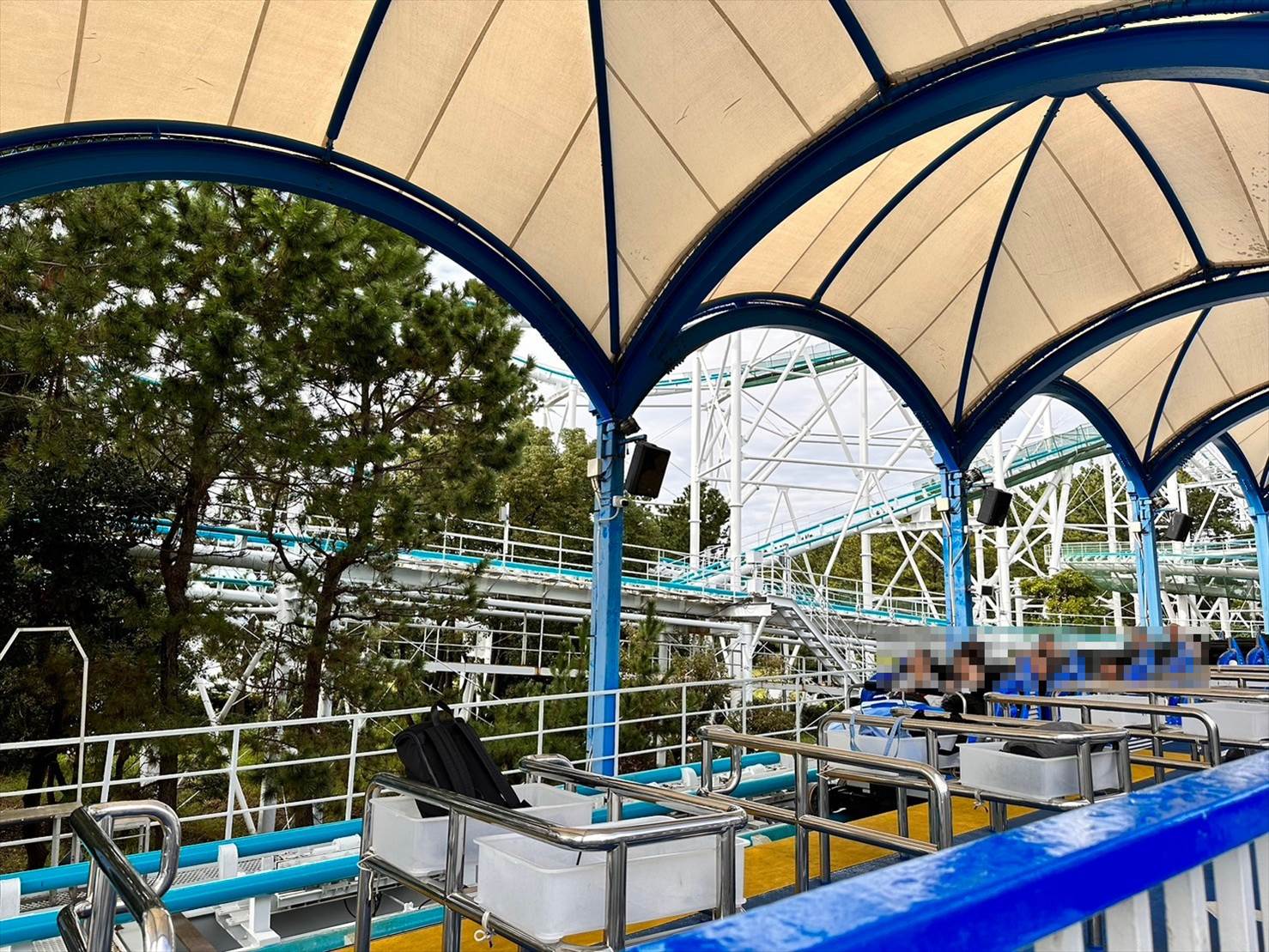 海に突き出した部分を走行するタイミングが序盤と中盤に二回ほどあり、シーパラならではの最高の爽快感を味わえました~!良いコースターです。楽しかった!