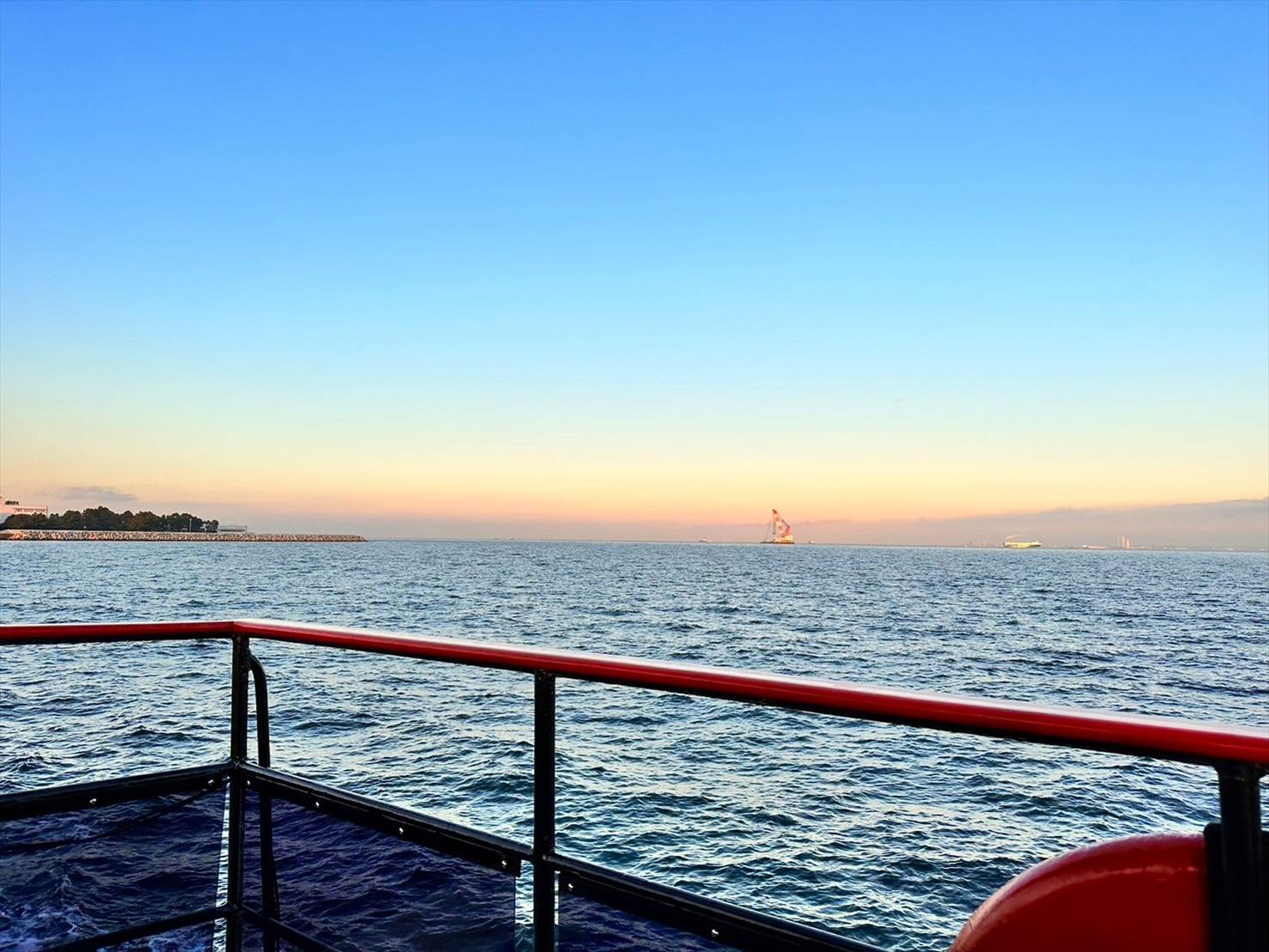 ここまで綺麗で、見事な夕焼けを、海の上から楽しめる。