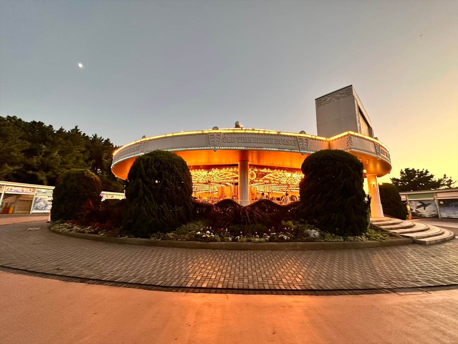 夕暮れのメリーゴーラウンド綺麗だなあ