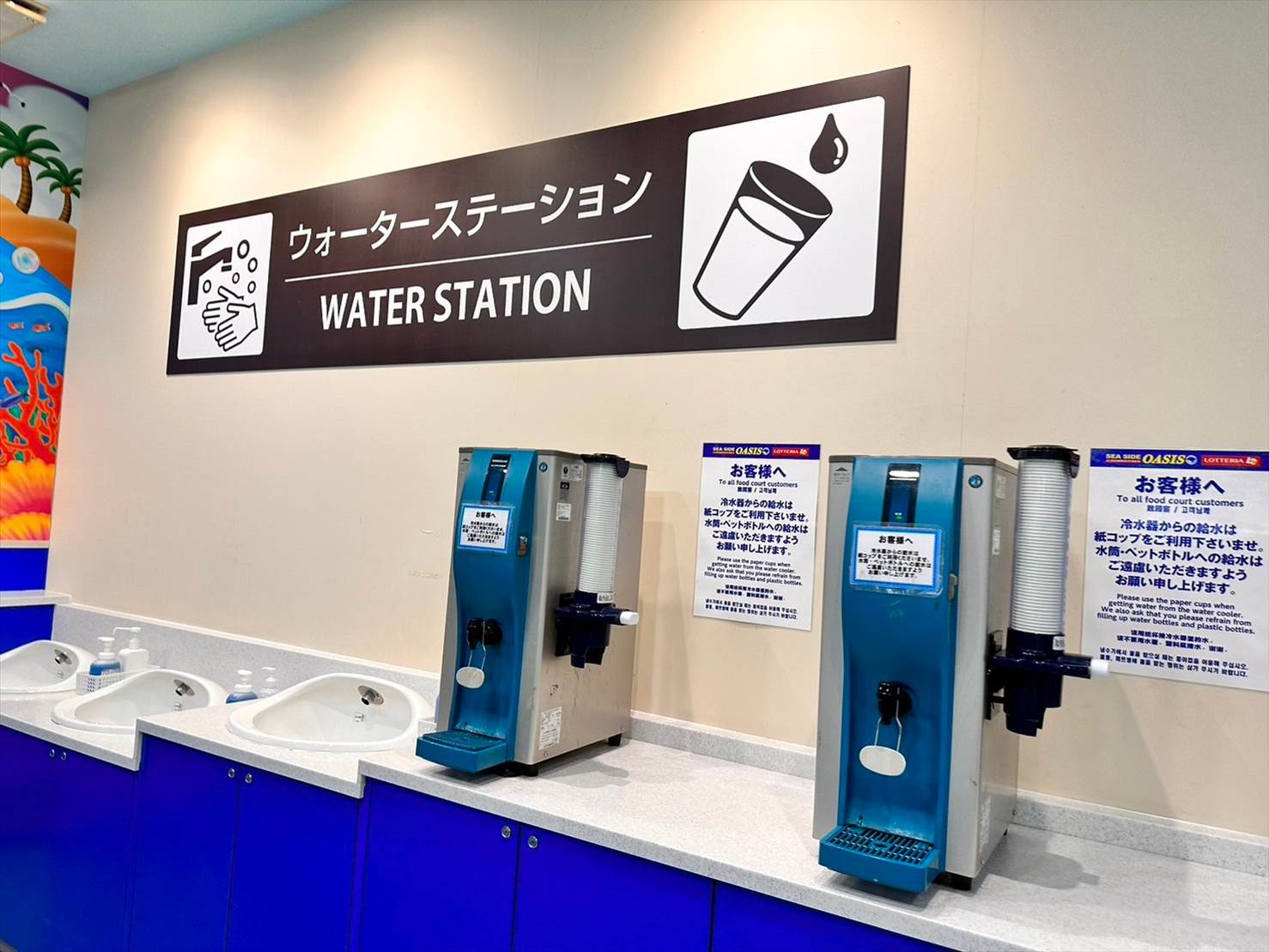 ▲各店舗でドリンクを購入することもできますが、フードコートらしく冷水機も用意されています。