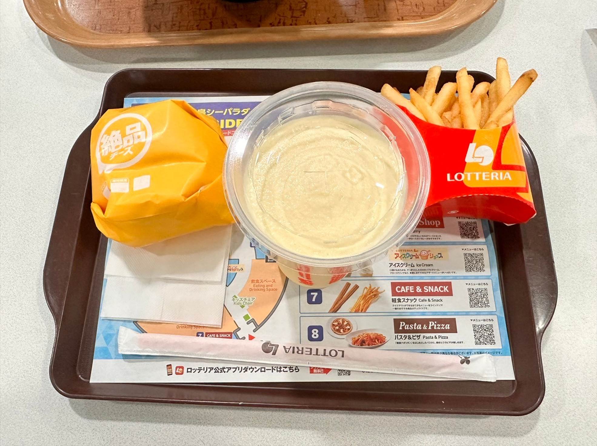 ▲そんなラインナップの中から私がチョイスしたのは、ロッテリアの絶品チーズバーガーのポテトMセット¥1,000。