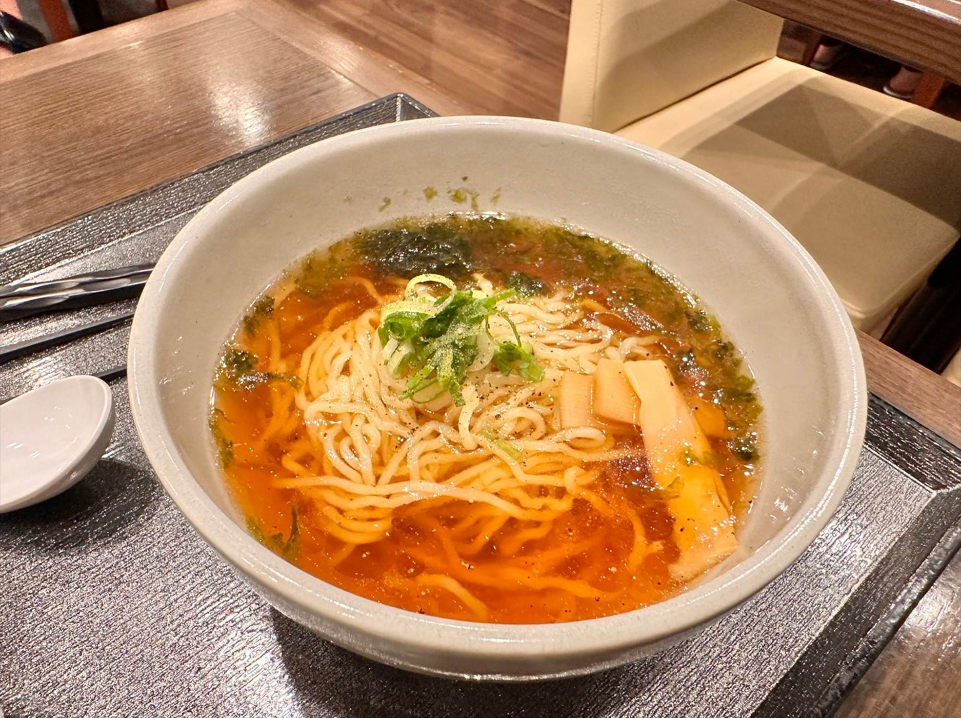 醤油味のあっさりとしたラーメンで、この遅い時間にいただくには大変ぴったりのお味。