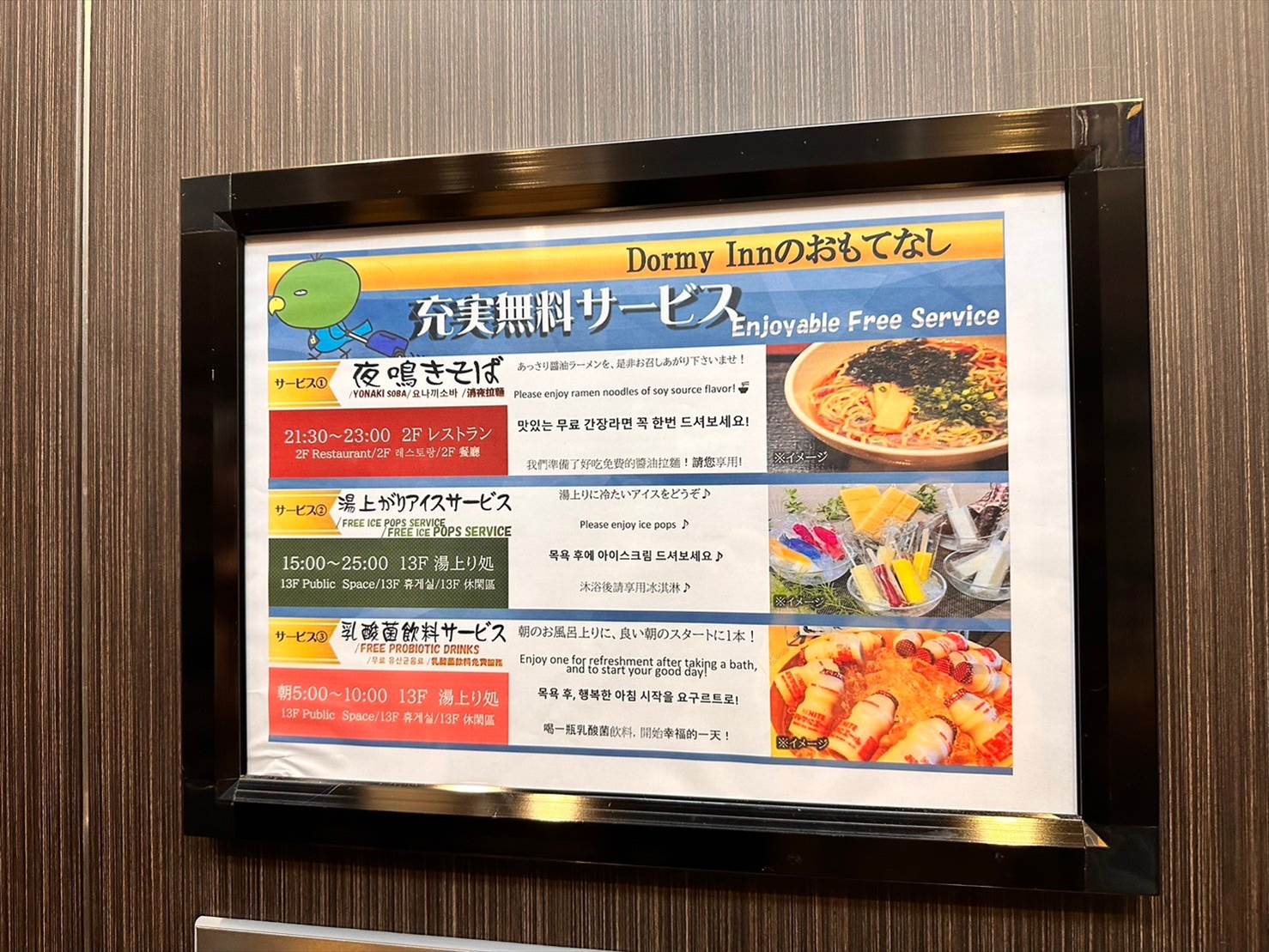 ▲ドーミーイン鹿児島では、夜の21:30~23:00に夜鳴きそばサービスを実施しています🍜