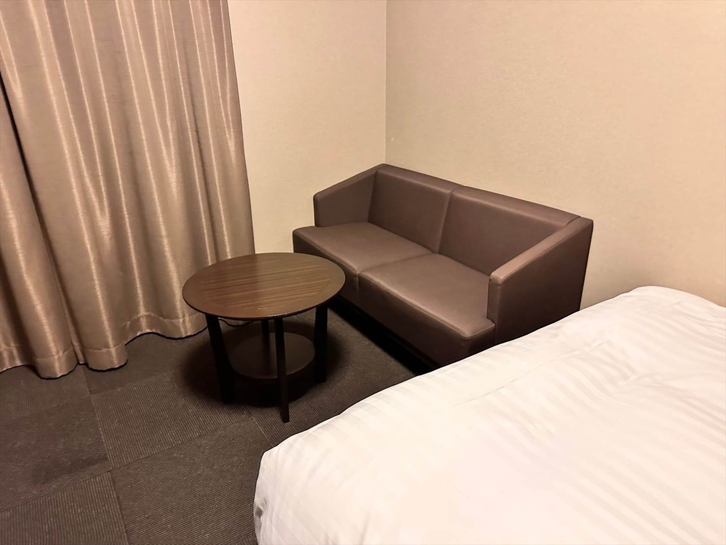 基本こういったホテルだと一人用のソファであることが多いので、このサイズのソファがあるのは嬉しいです。
