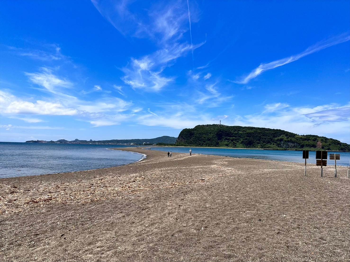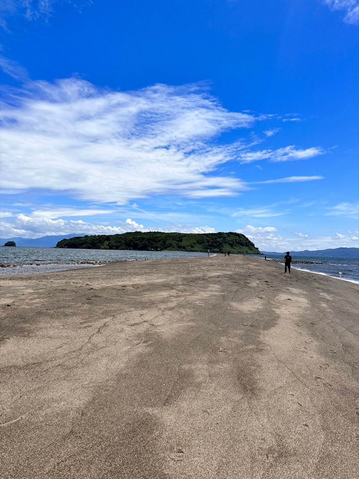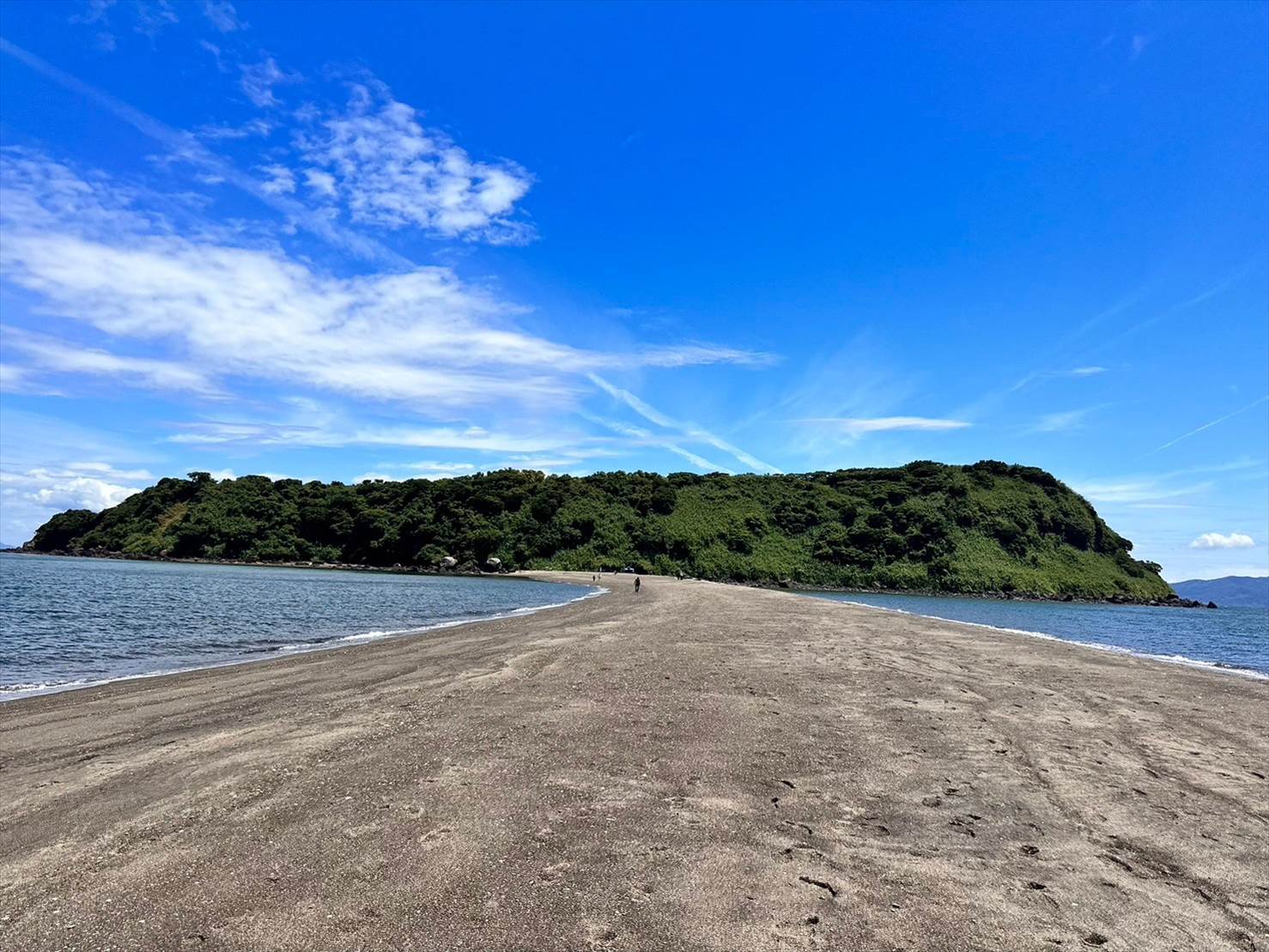 3月から10月の間、大潮や中潮の干潮時に砂の道(砂州)が出現し、島に渡ることができます。