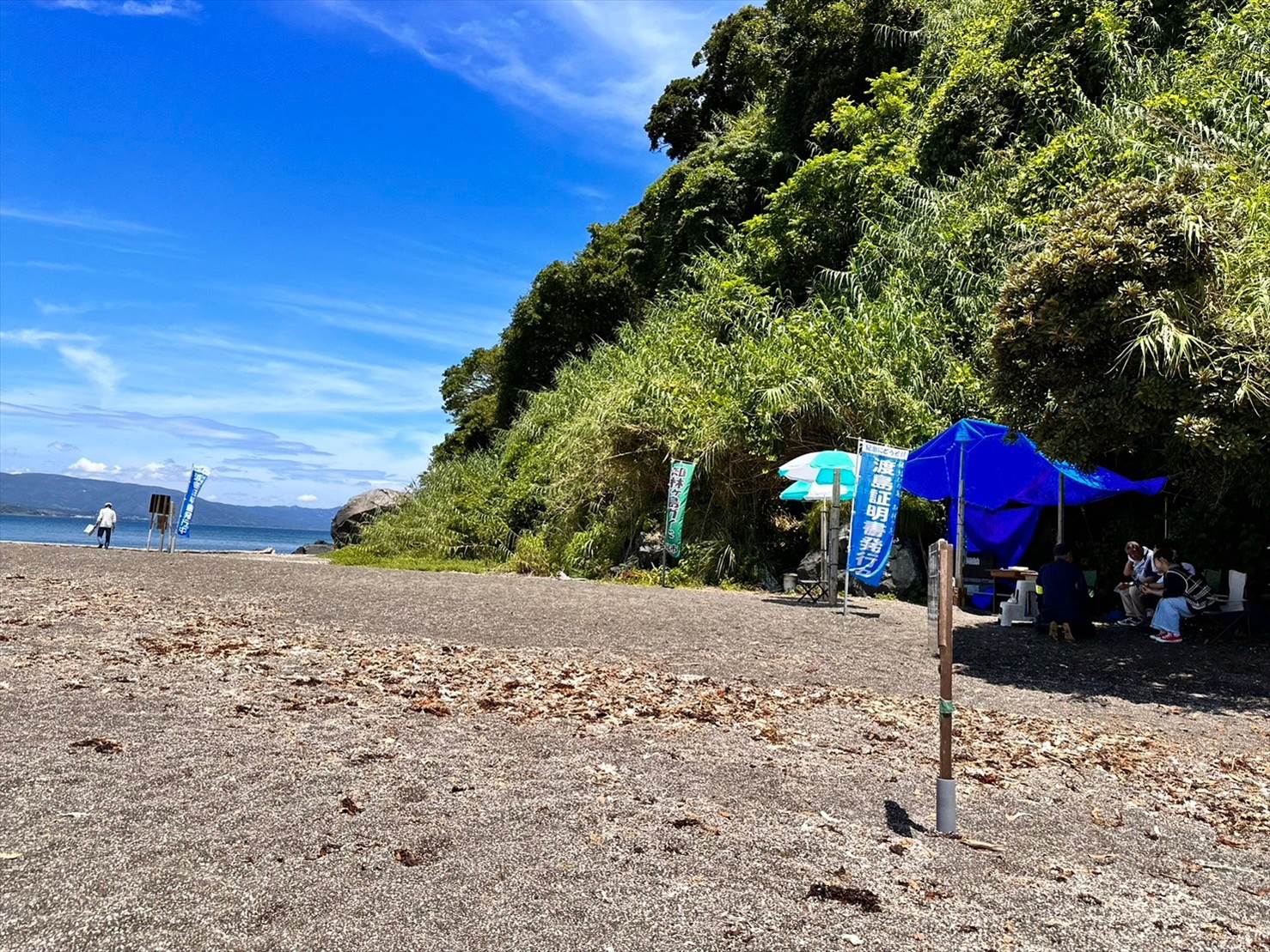 ▲知林ヶ島近くにはエコキャンプ場もあり、広く気持ちの良いスポット!